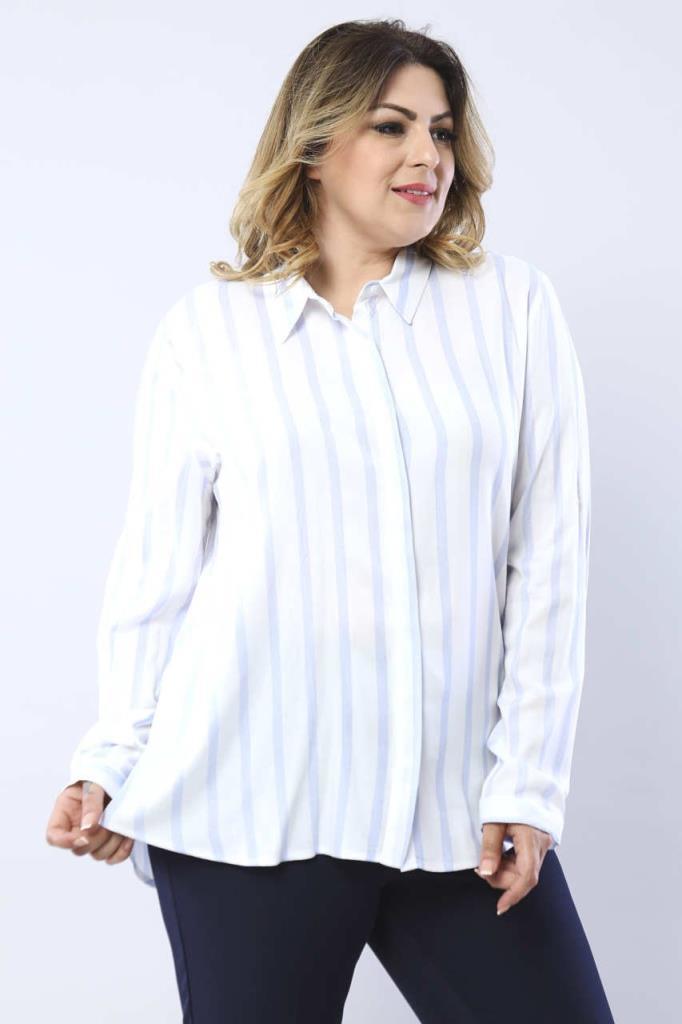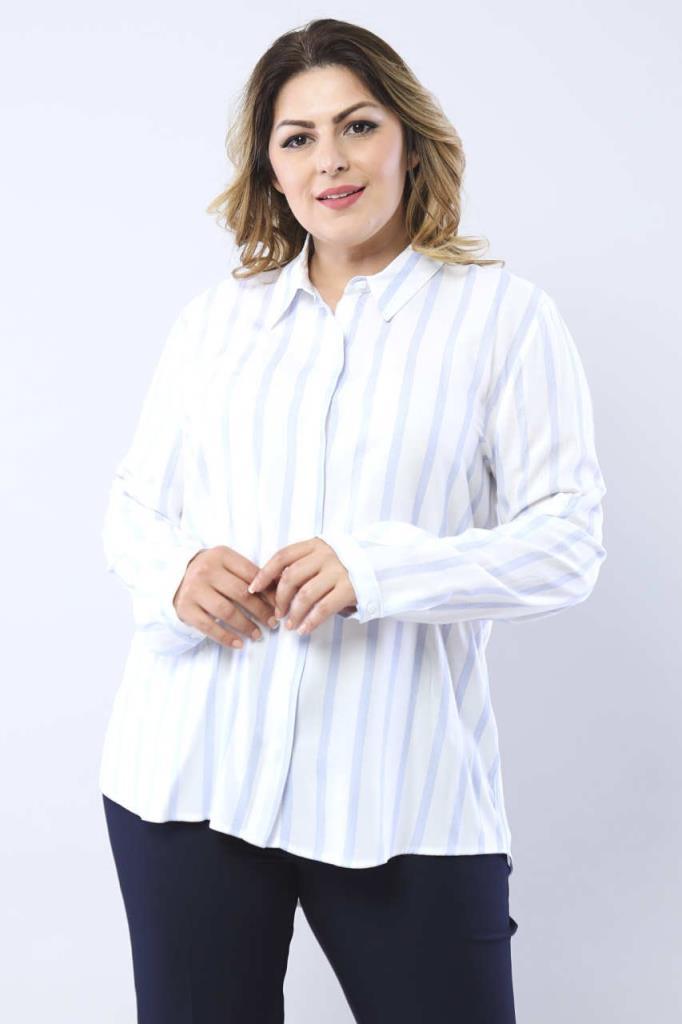 Büyük Beden Mavi Çizgili Beyaz Gömlek