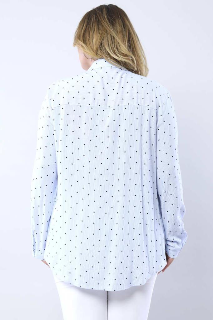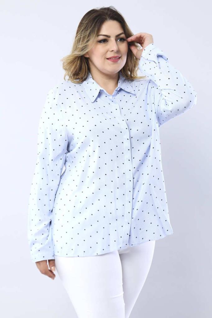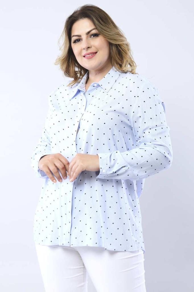Ürün Özellikleri: Klasik yaka özellikli, gizli düğme iliklemeli, tam kalıp, uzun kollu büyük beden gömlek.