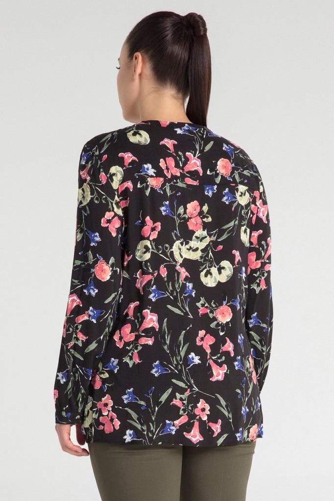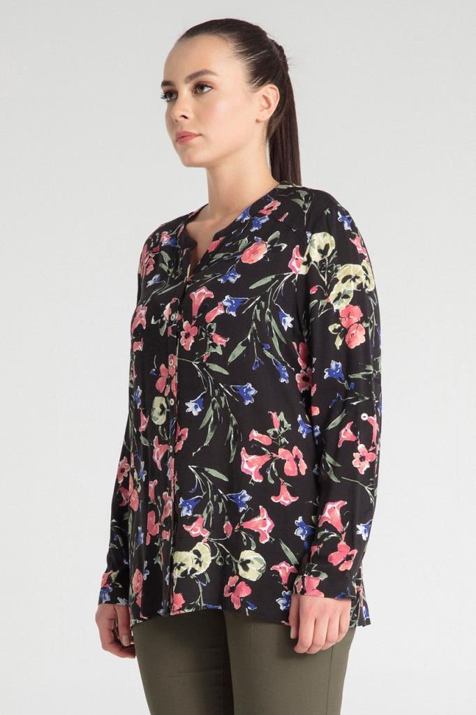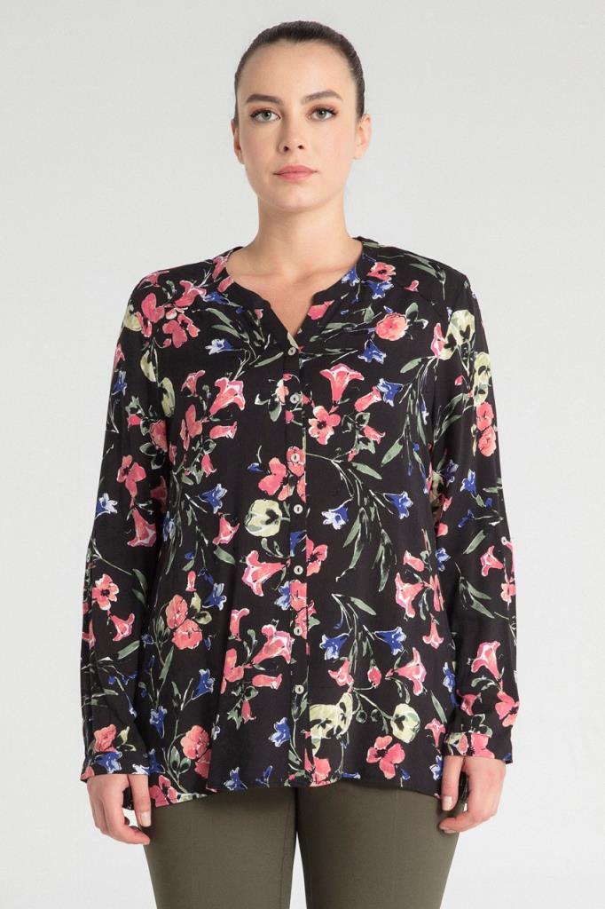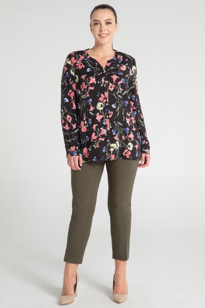 Büyük Beden Pembe Baskılı Siyah Gömlek