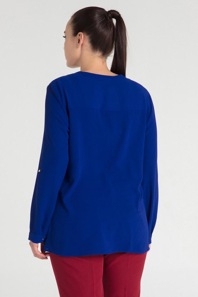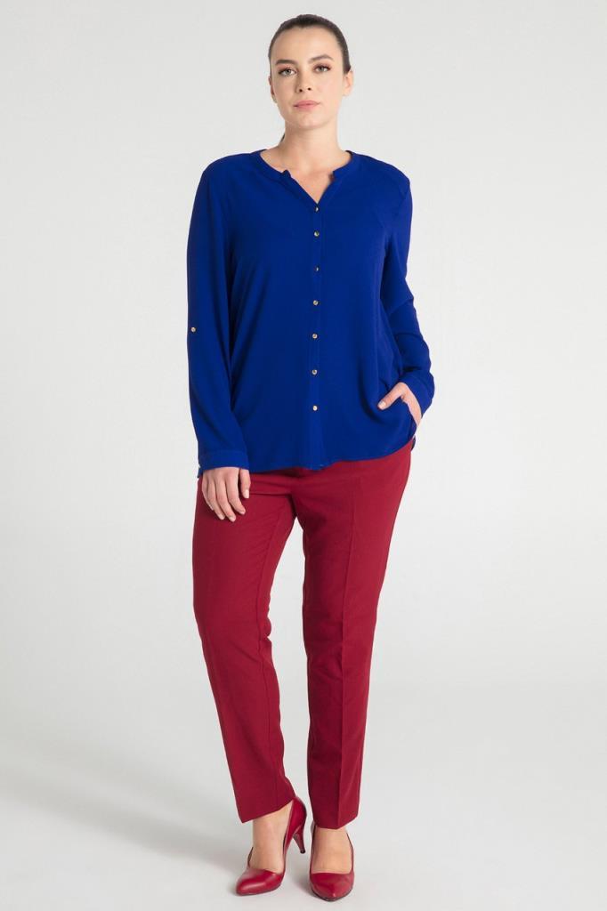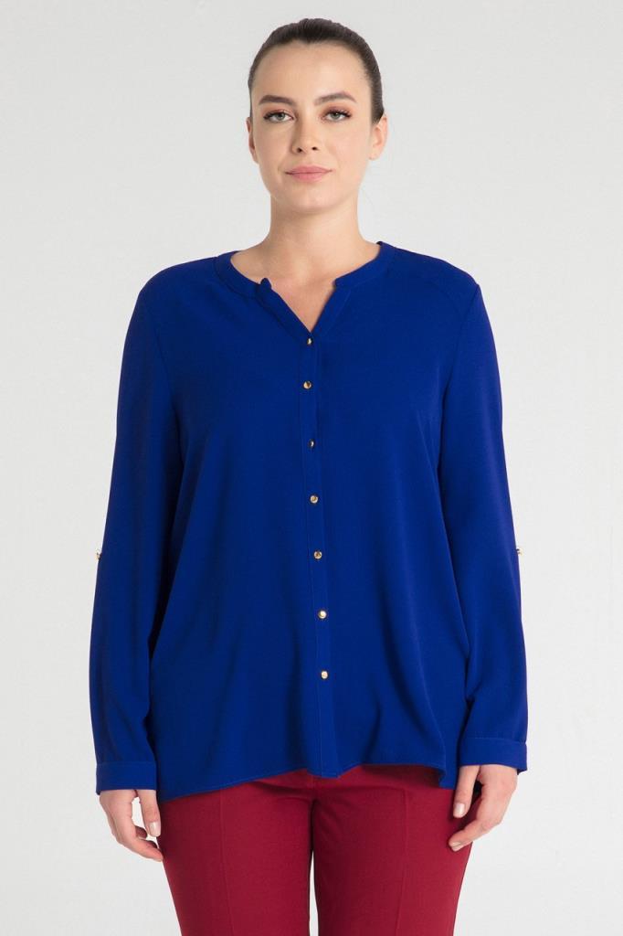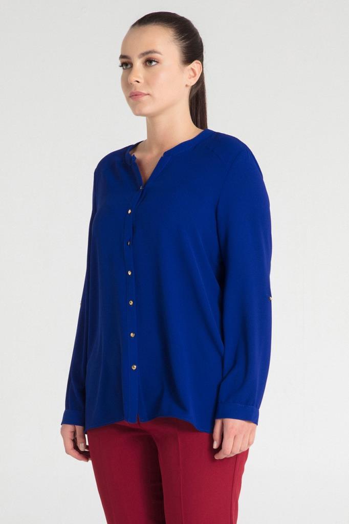 Ürün Özellikleri: Hakim yaka özellikli, altın rengi düğme detaylı, bol kalıp, uzun kollu büyük beden gömlek.