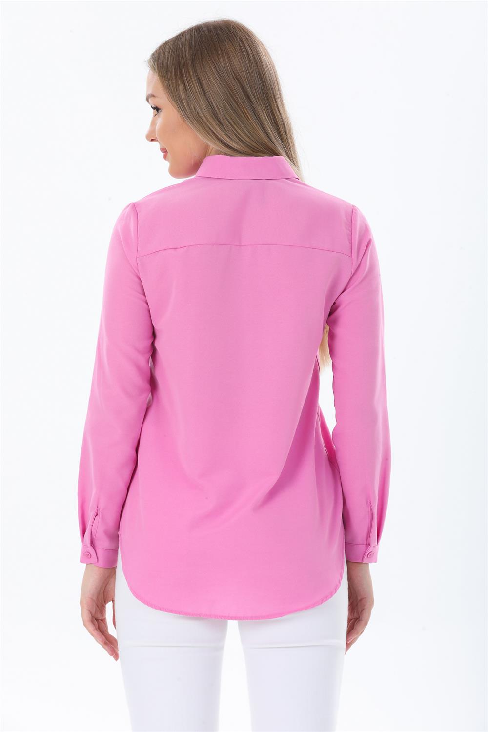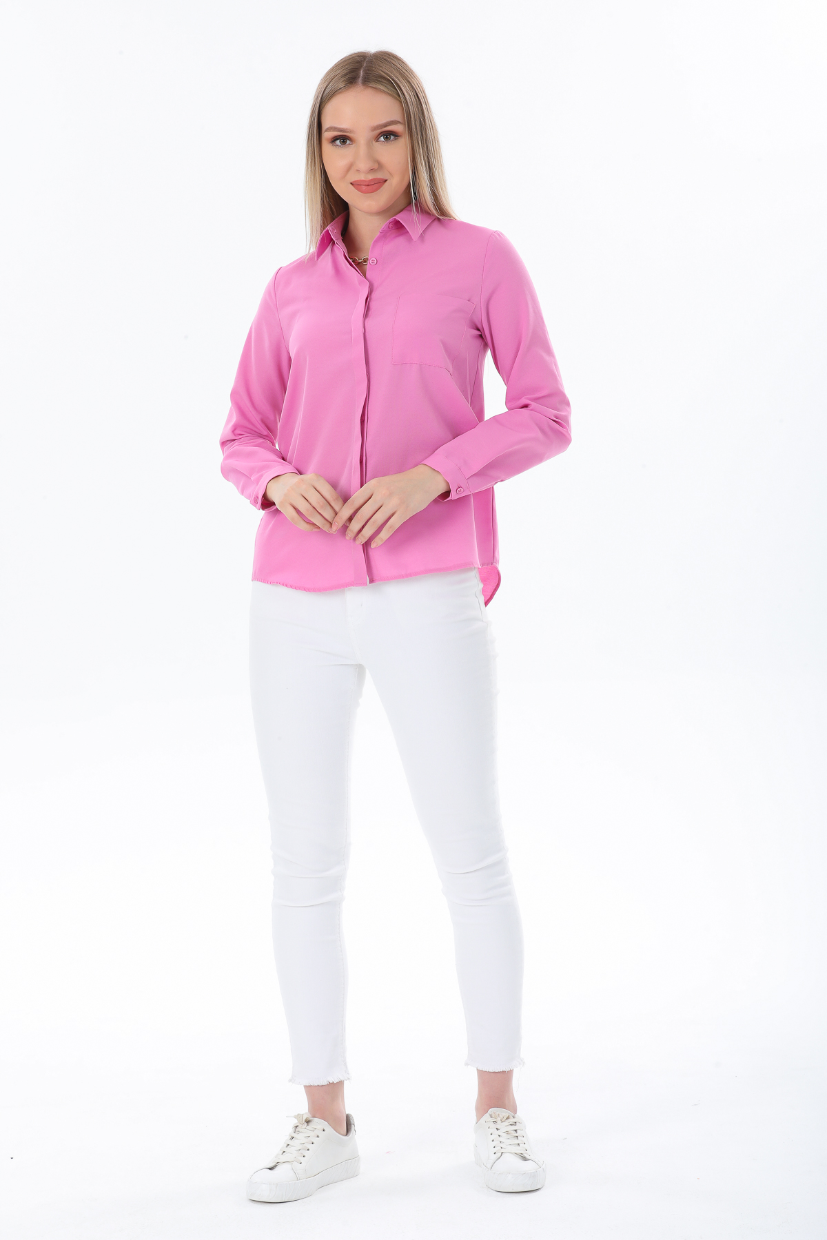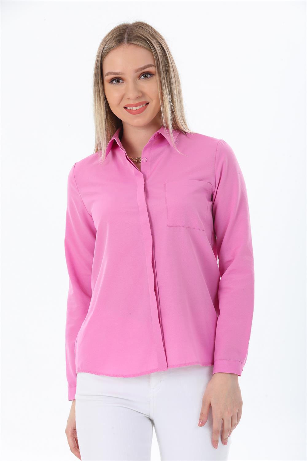 Kadın Gizli Düğme Özellikli Cepli Tunik Gömlek