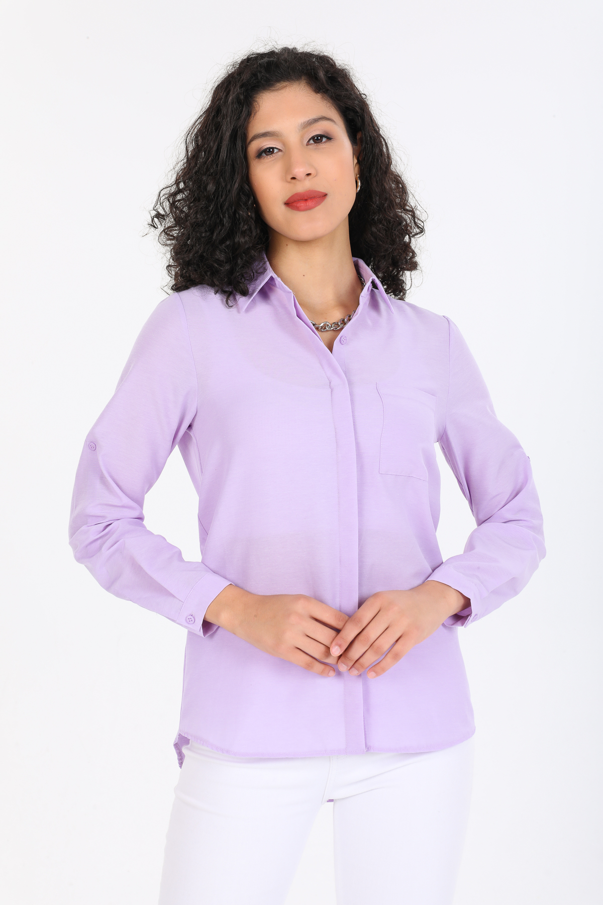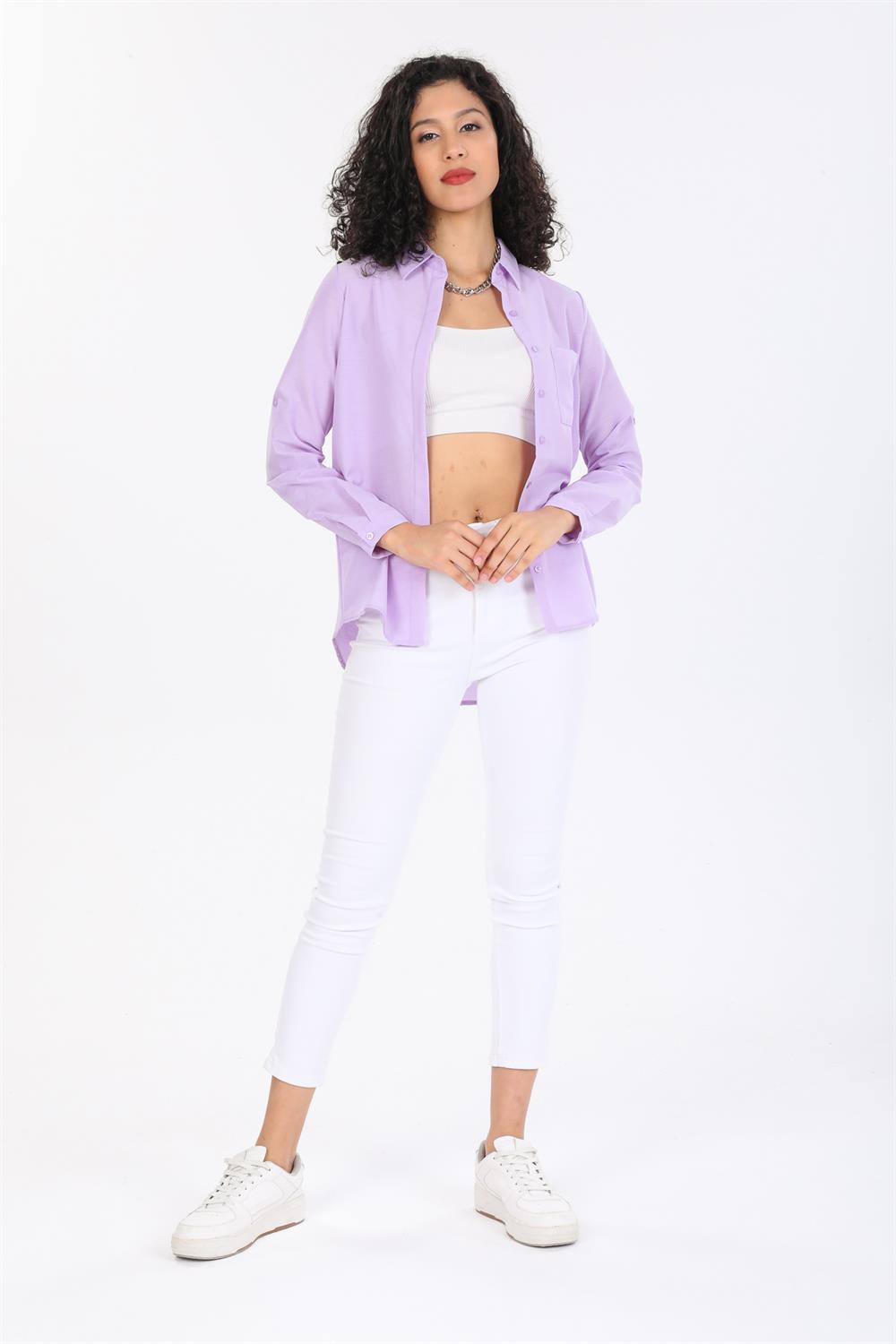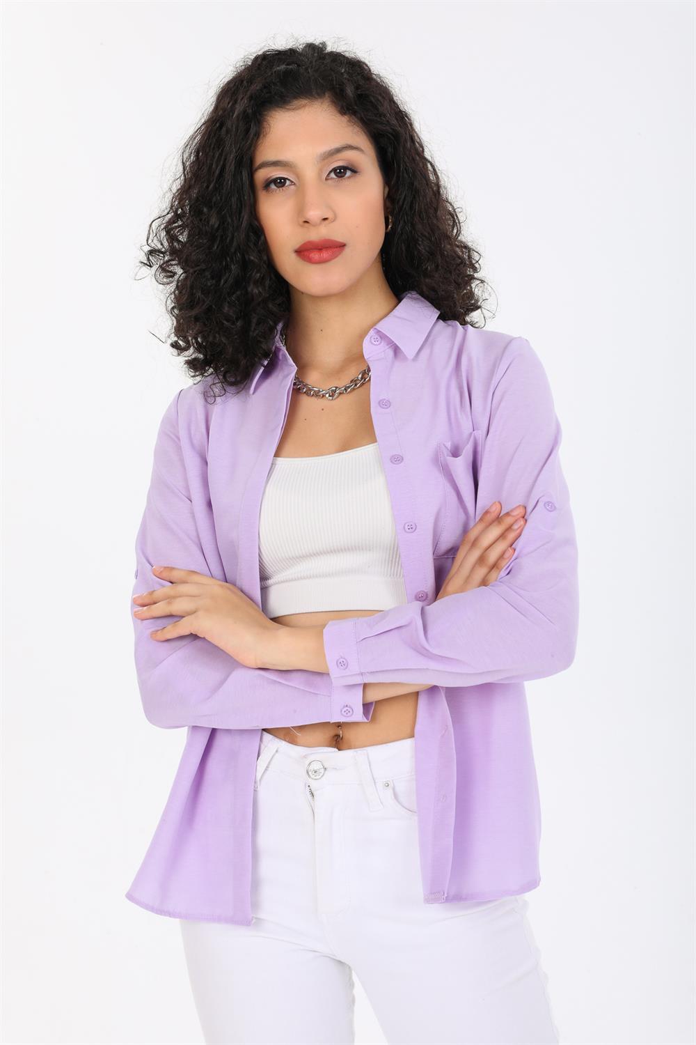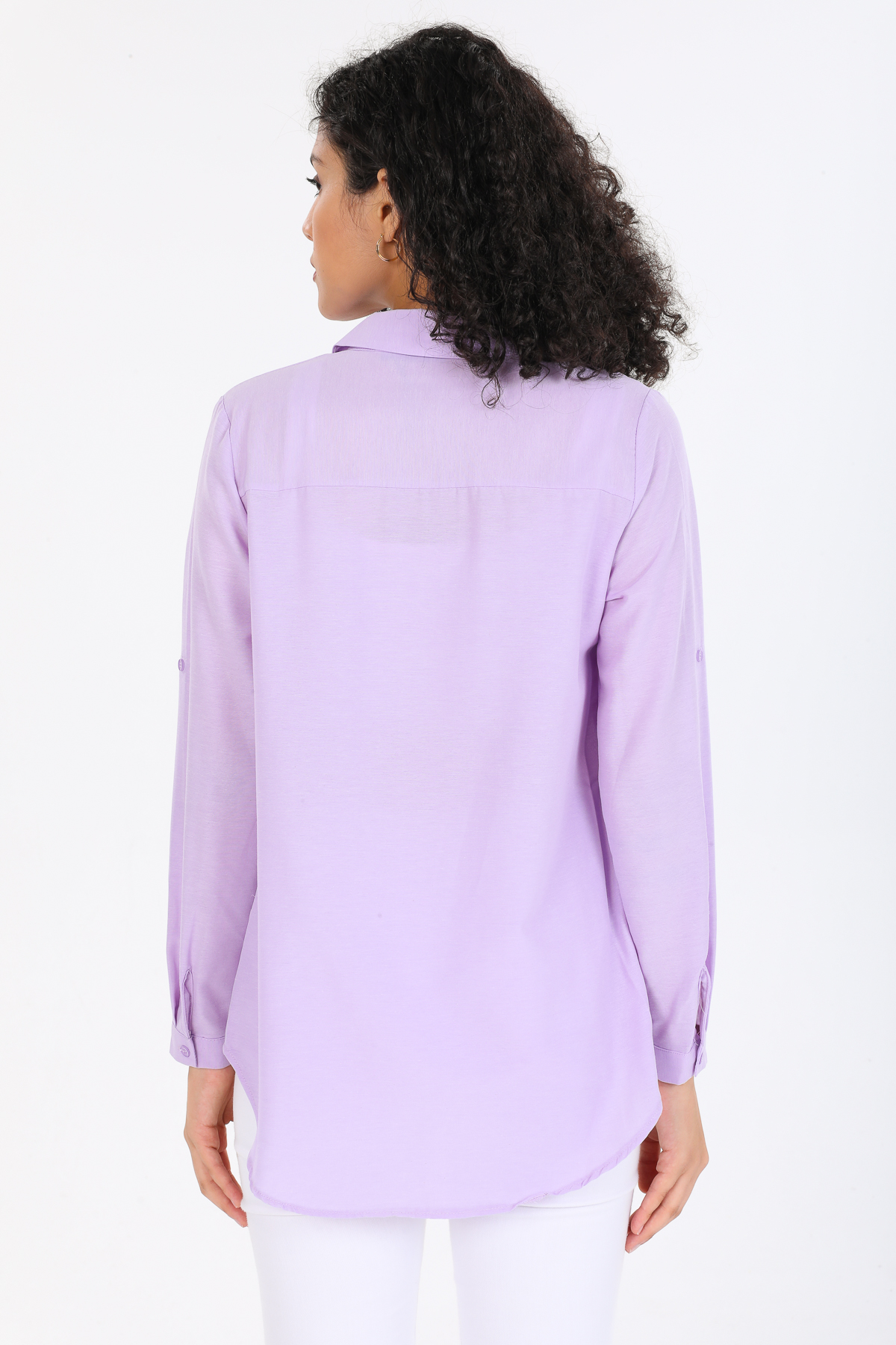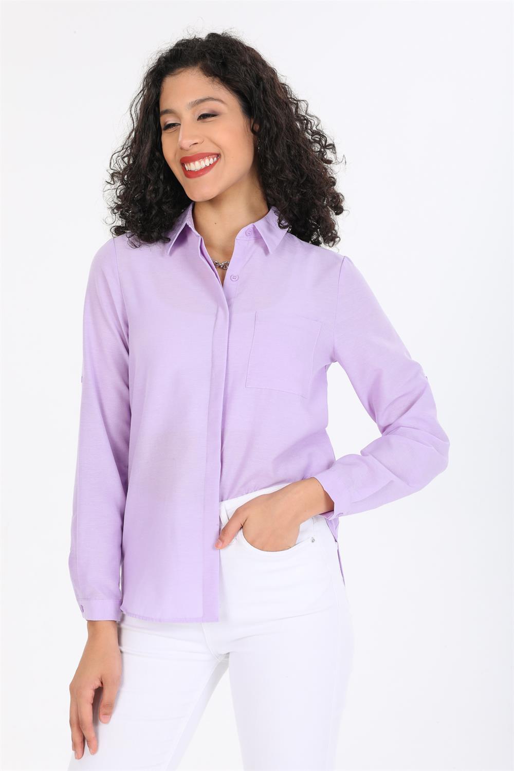 Kadın Gizli Düğme Özellikli Cepli Tunik Gömlek