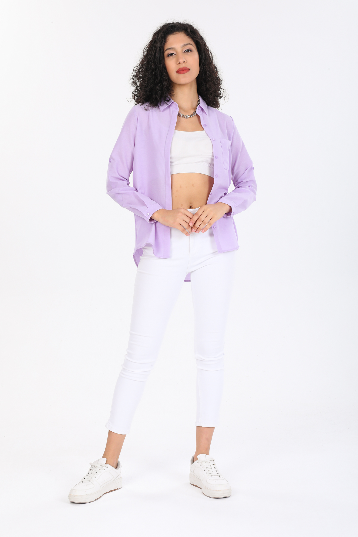 Kadın Basic Gizli Düğme Özellikli Gömlek