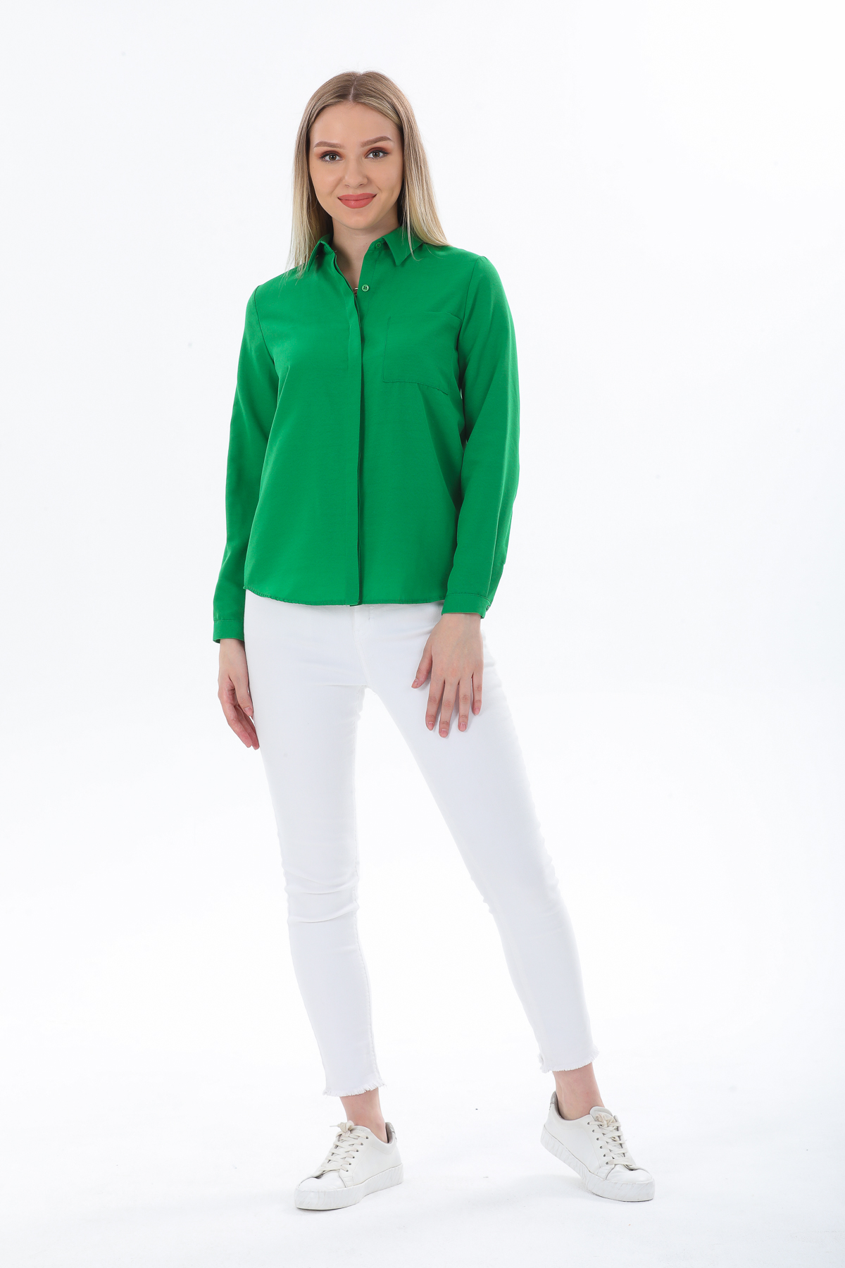 Kadın Basic Gizli Düğme Özellikli Gömlek