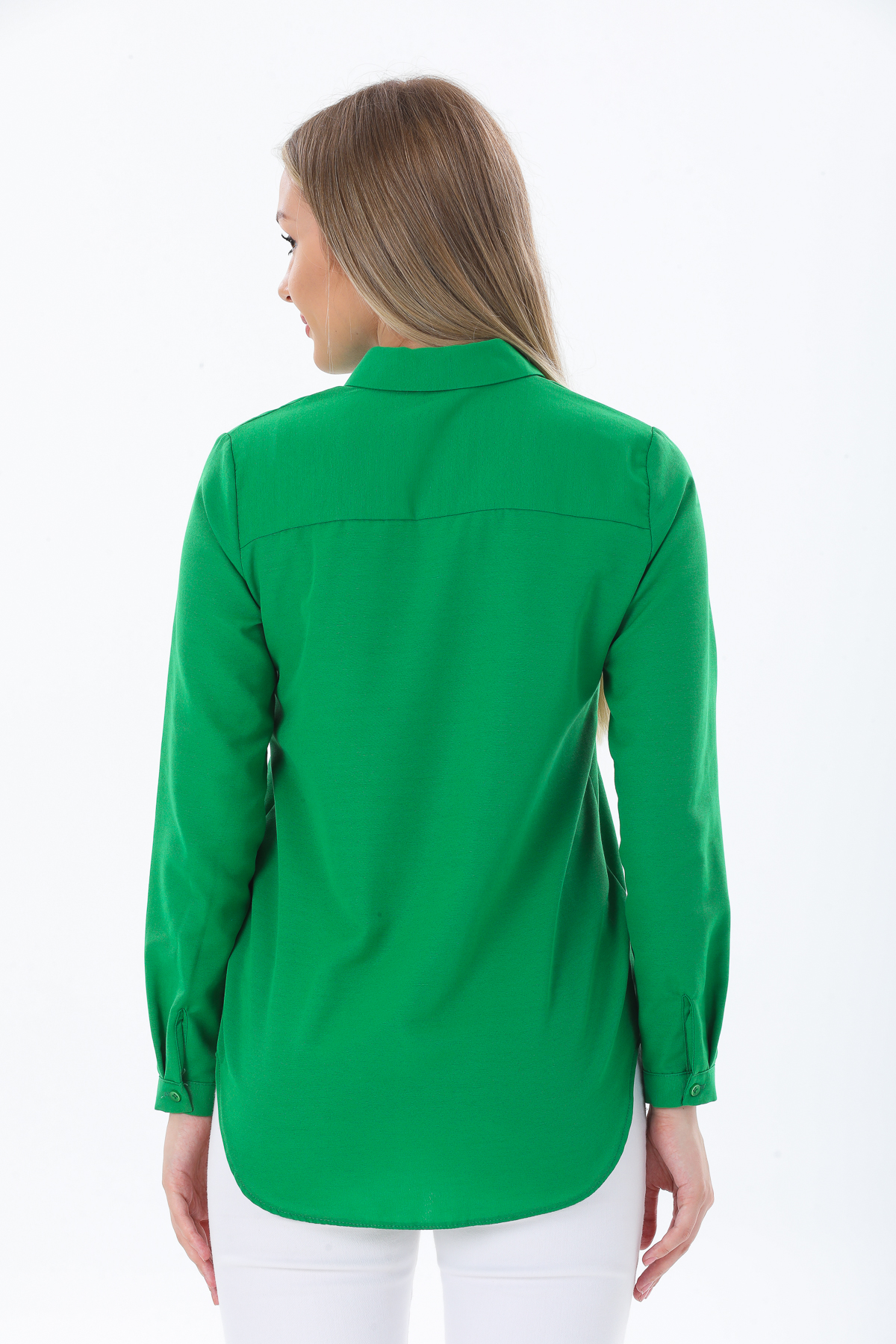 Kadın Gizli Düğme Özellikli Cepli Tunik Gömlek