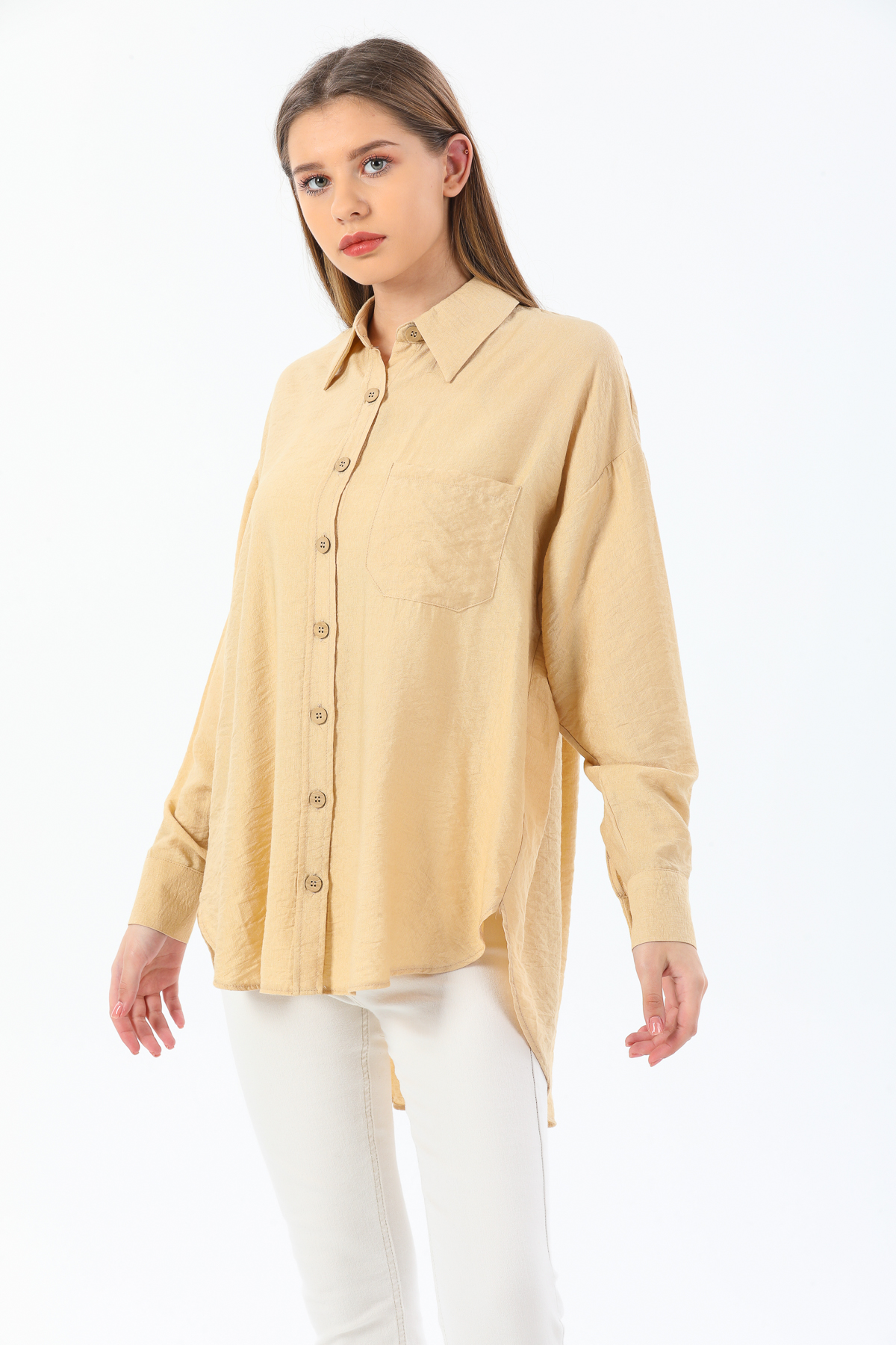 Kadın Gizli Düğme Özellikli Cepli Tunik Gömlek