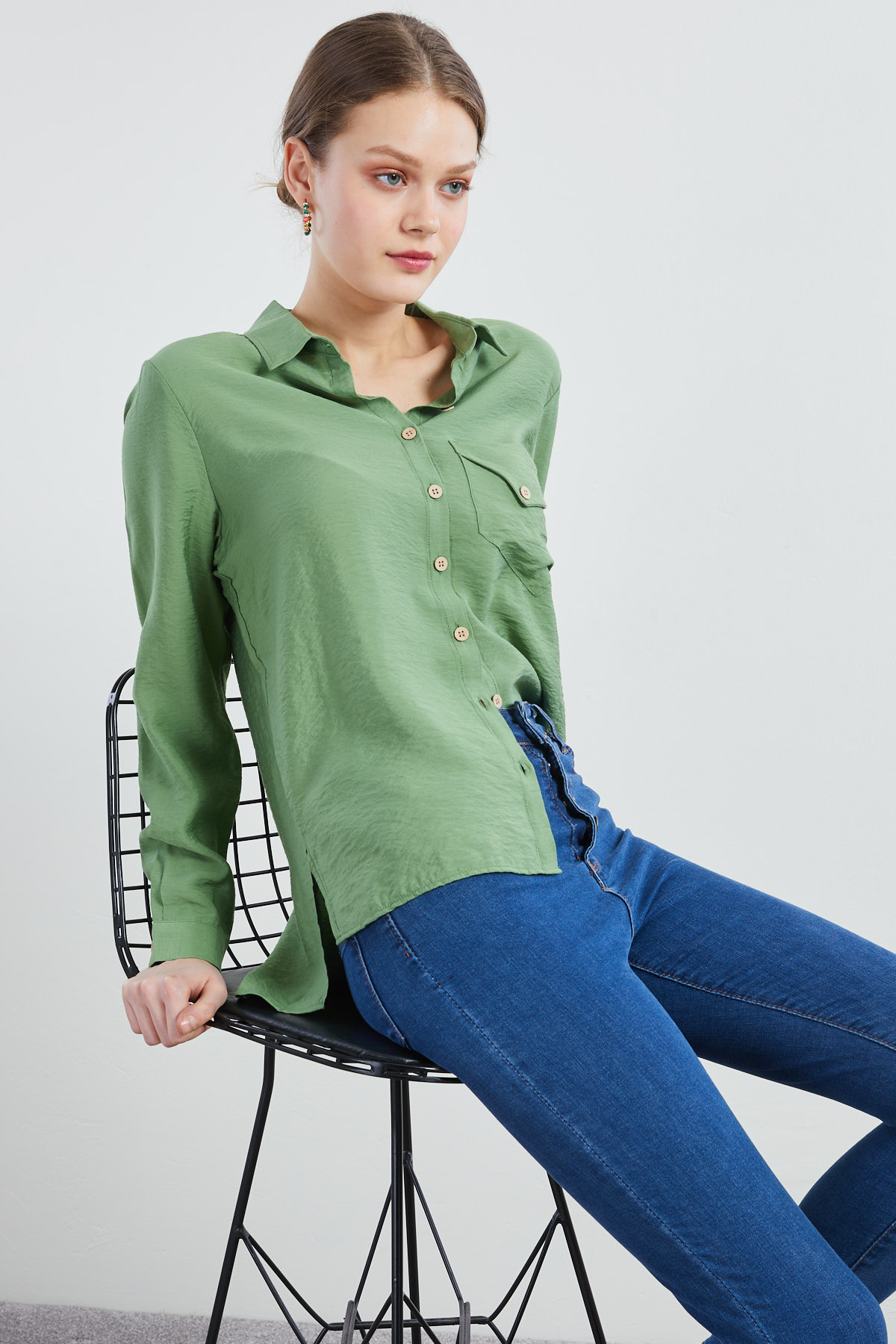 Cep Detaylı Yeşil Gömlek