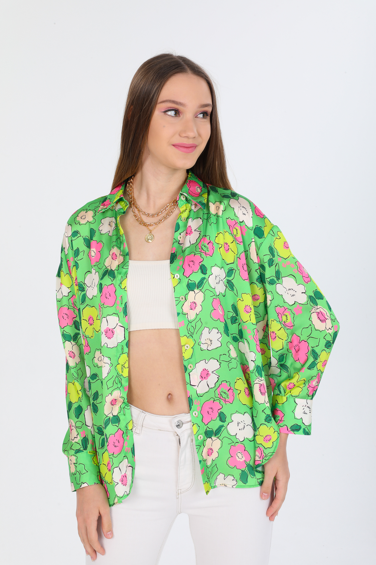 Kadın Basic Gizli Düğme Özellikli Gömlek