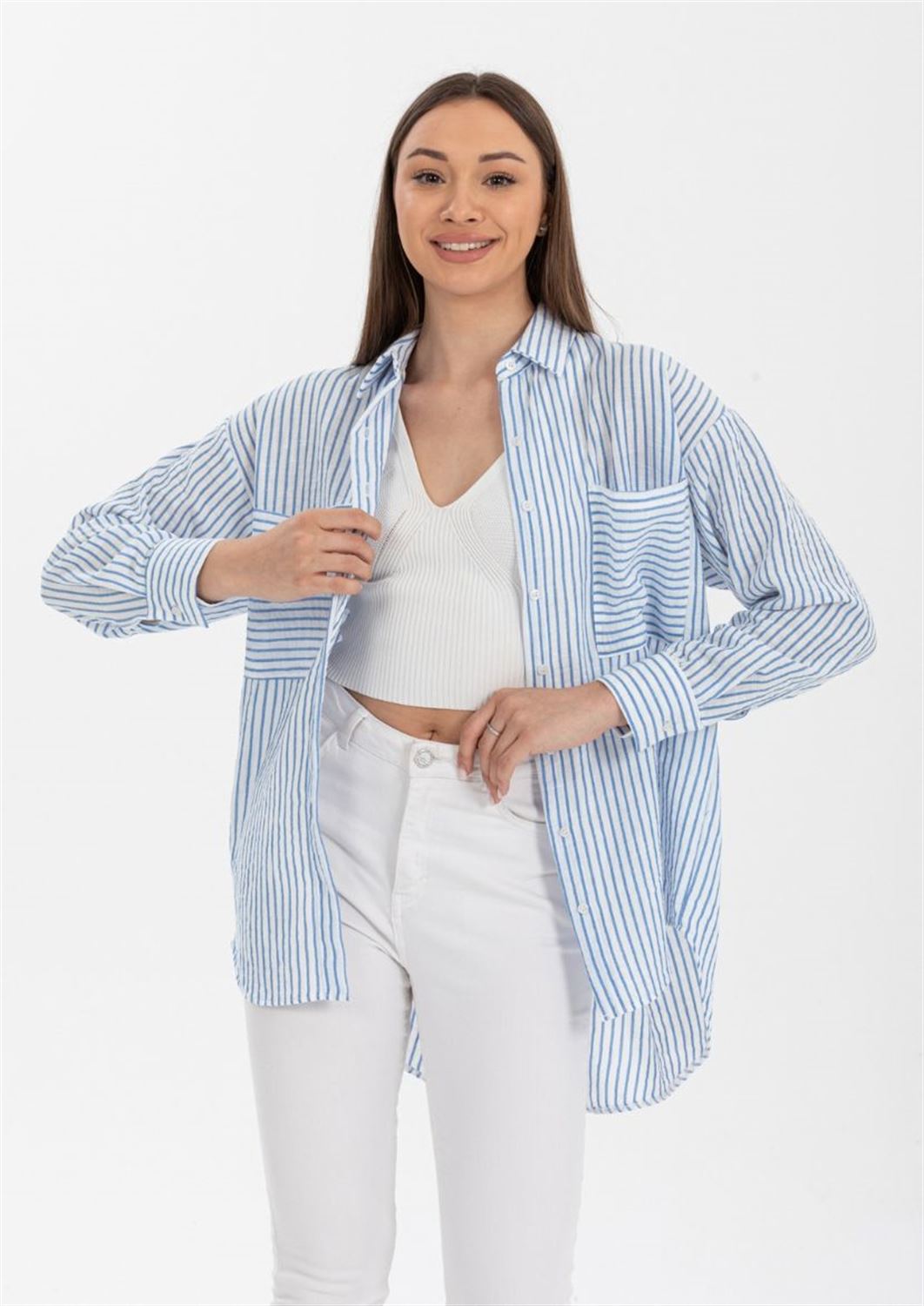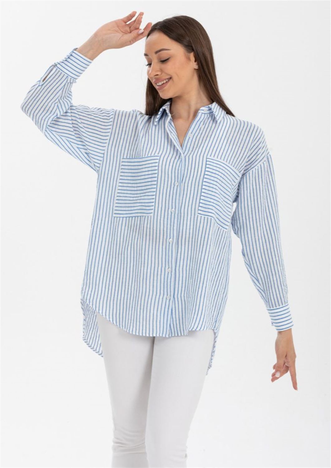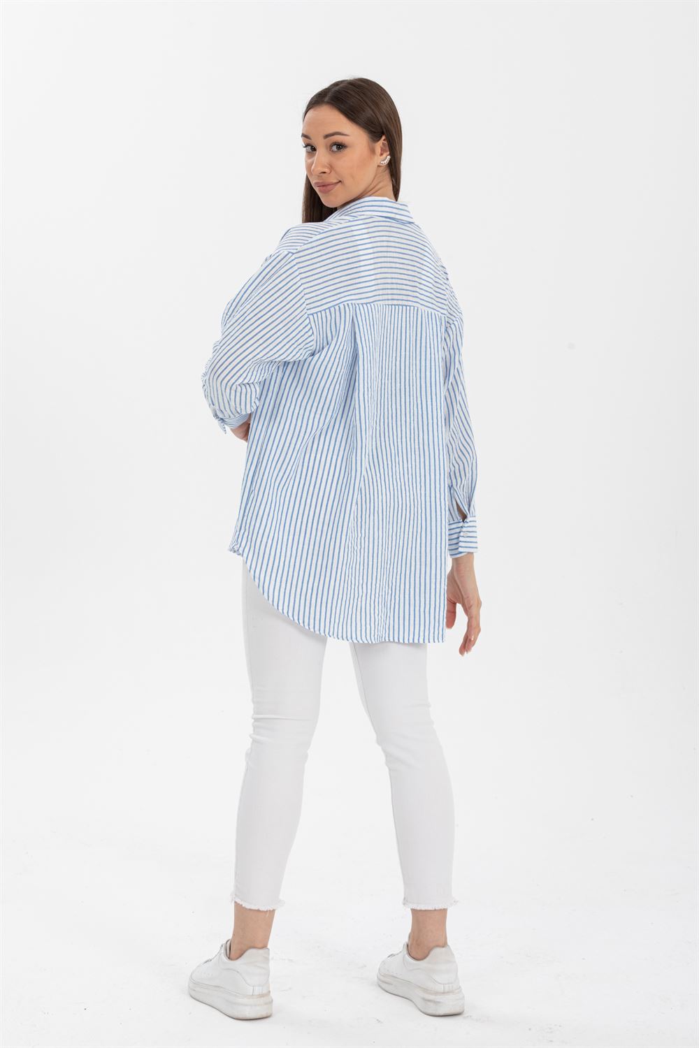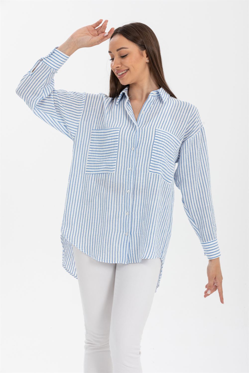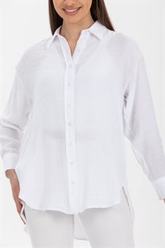 Luna Keten Oversize Gömlek, keten kumaşın hafif ve nefes alabilir yapısı sayesinde gün boyu rahatlık sunar. Sıcak havalarda serin kalmanı