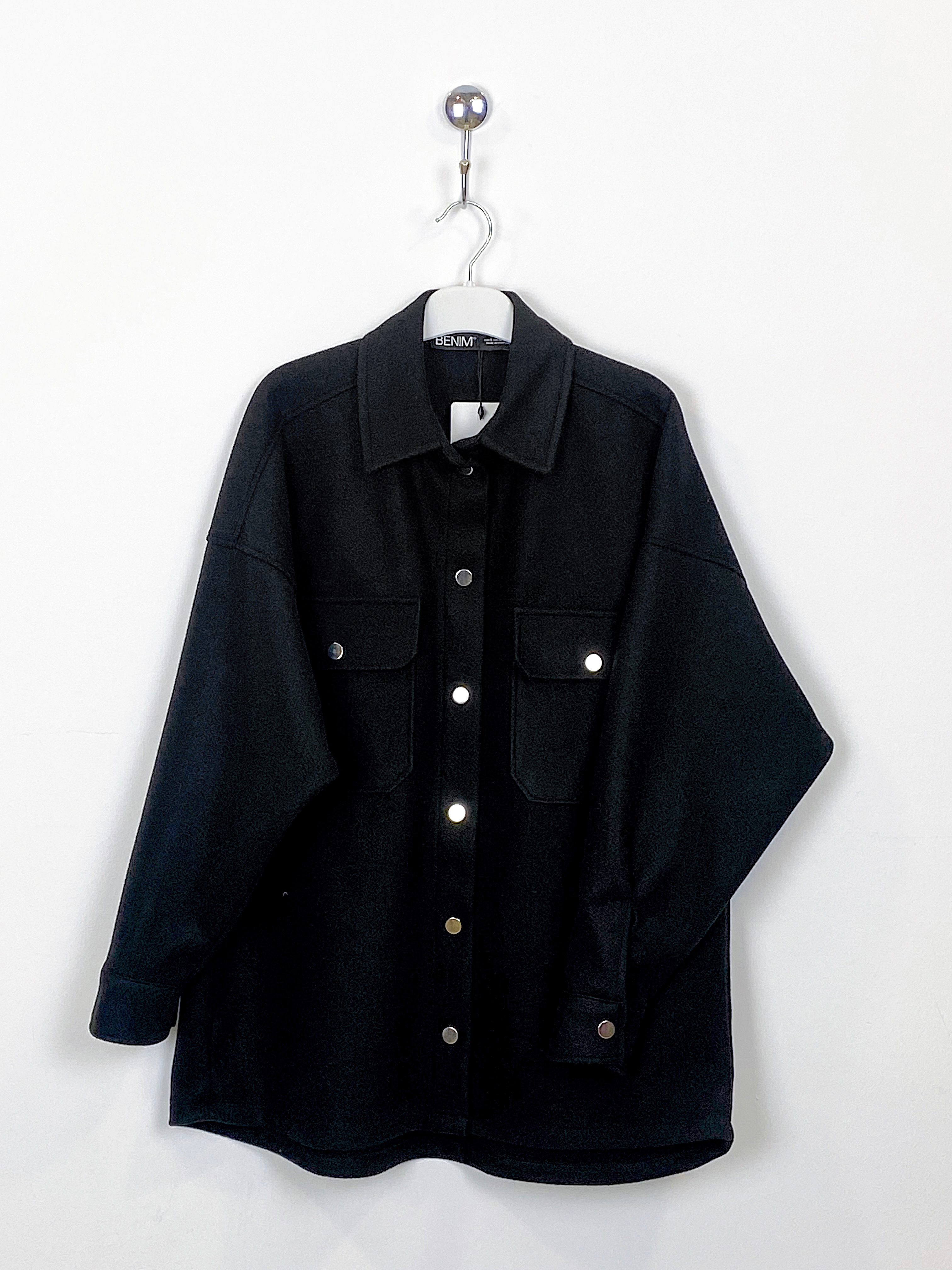 Çift Cepli Çıtçıtlı Oversize Kaşe Ceket