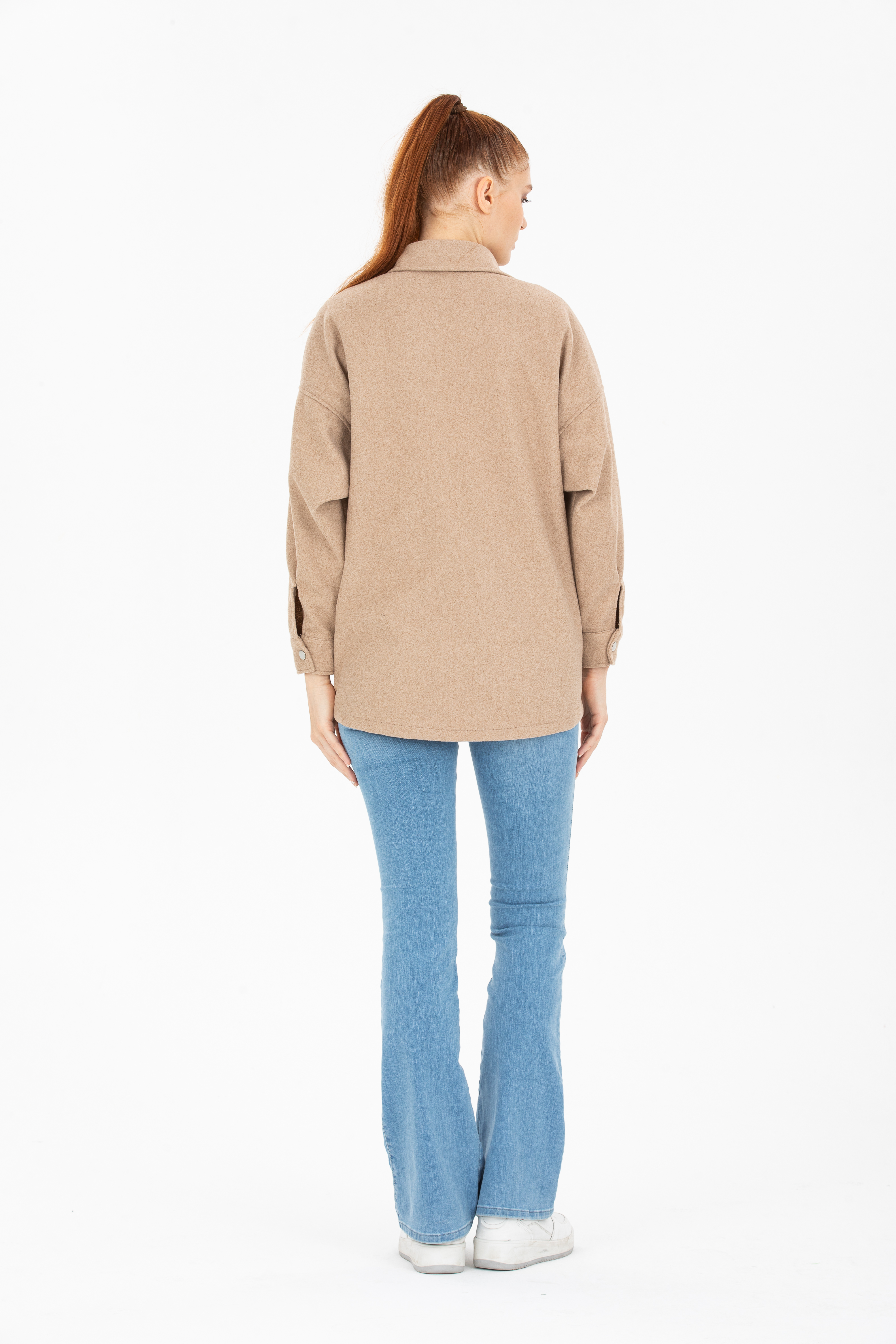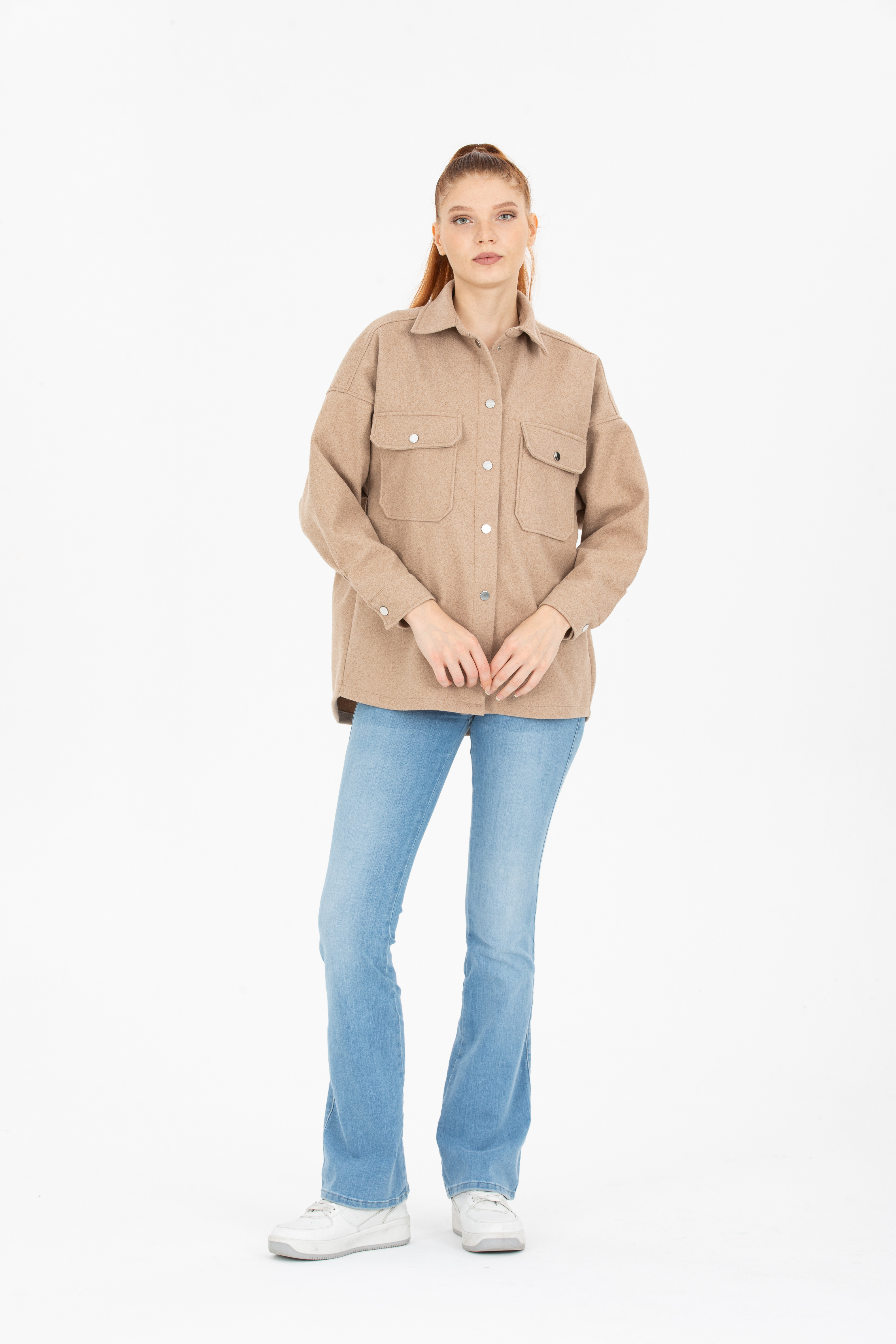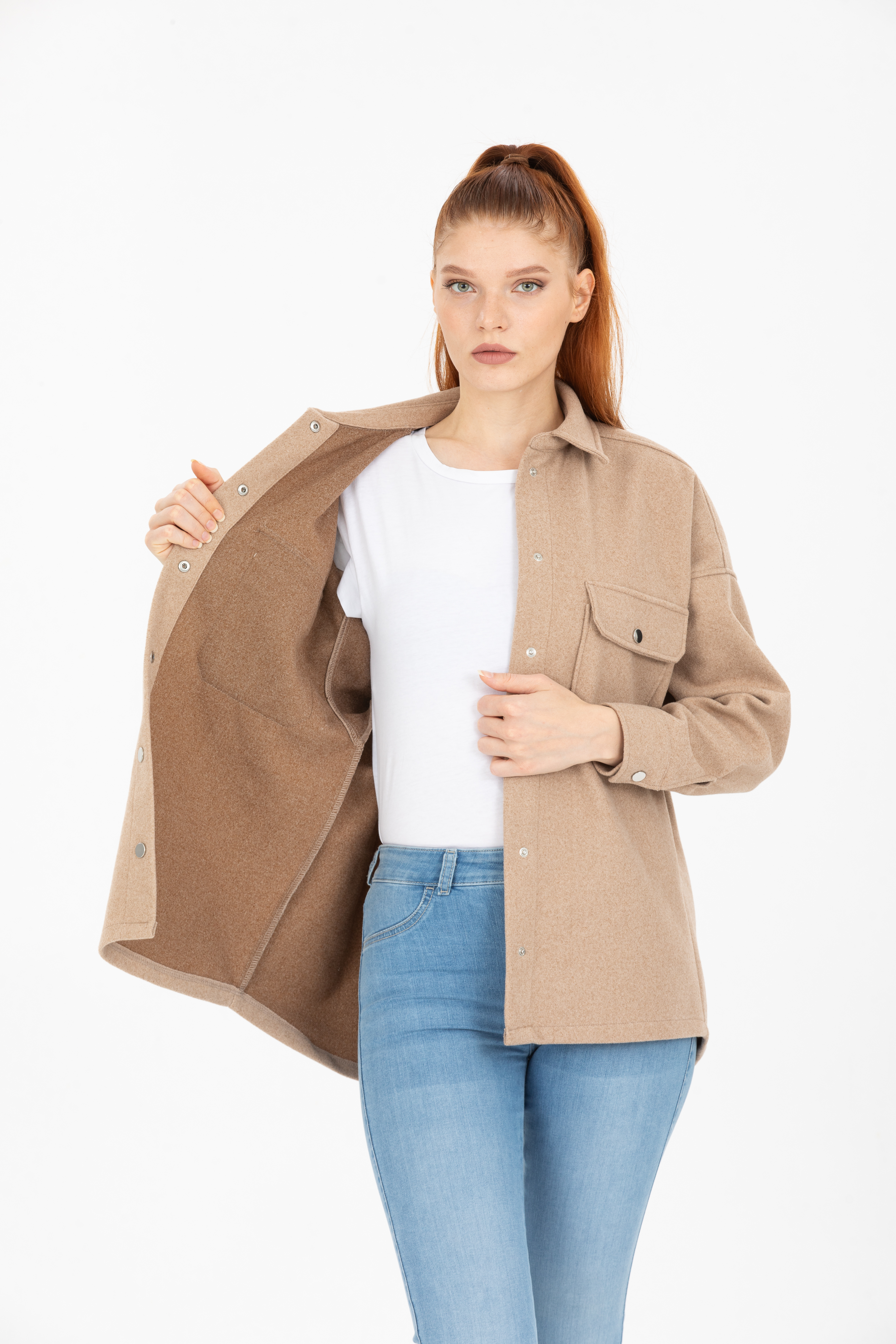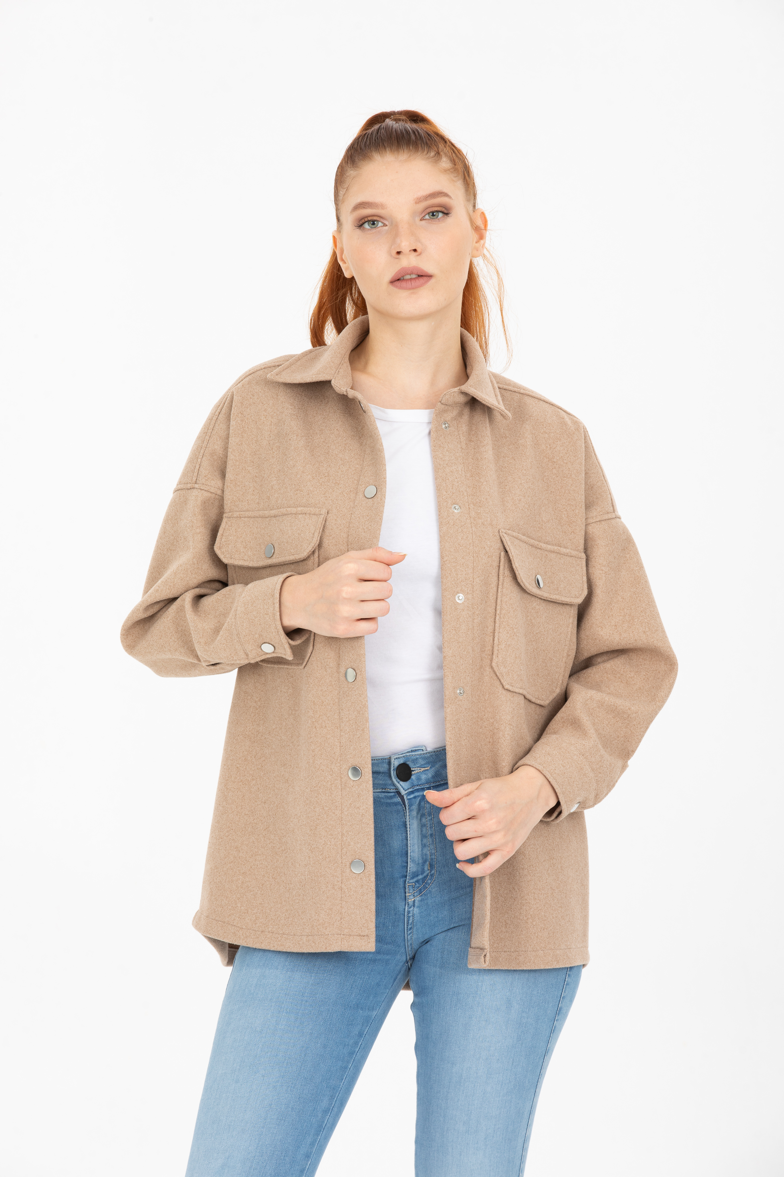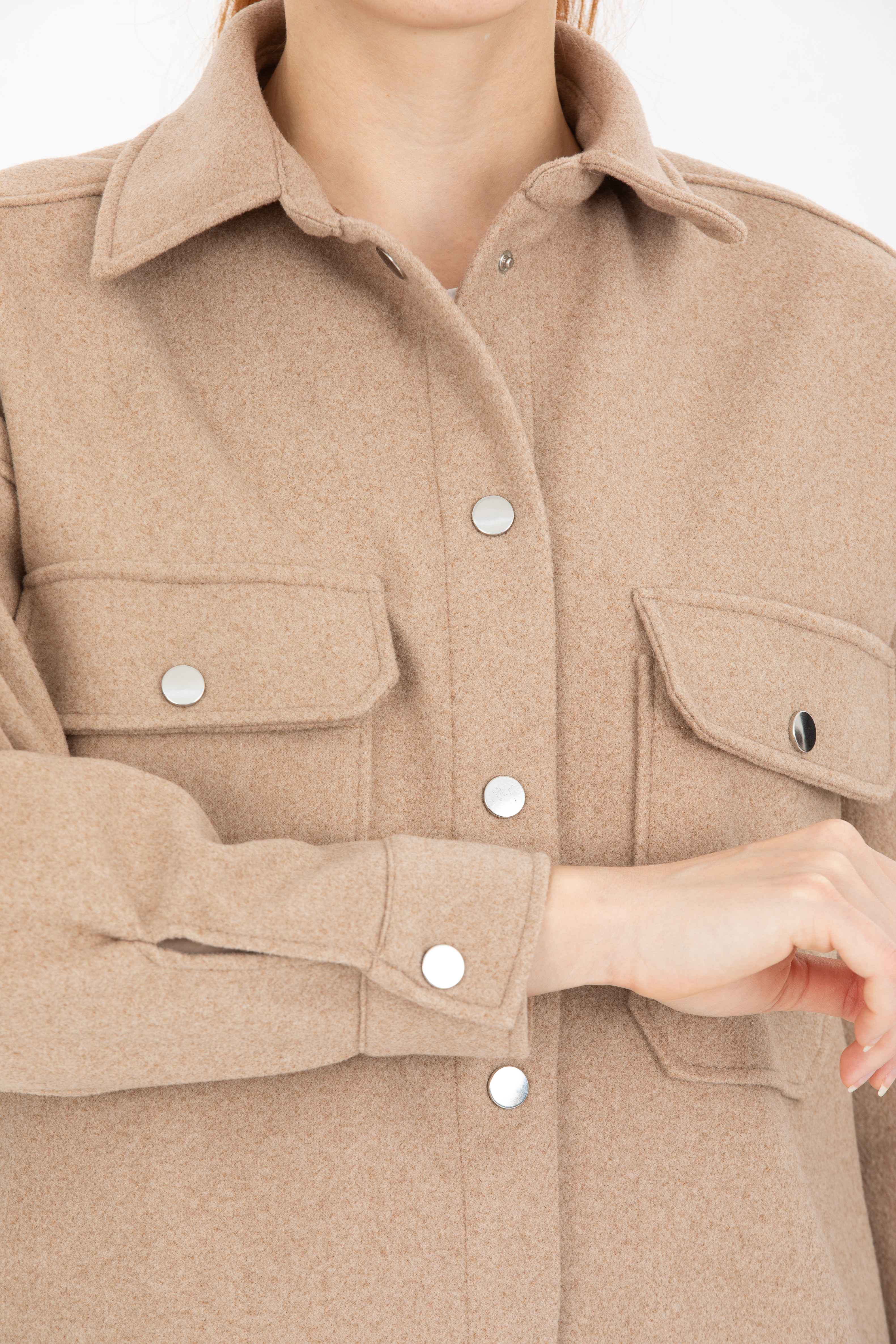 Çift Cepli Çıtçıtlı Oversize Kaşe Ceket