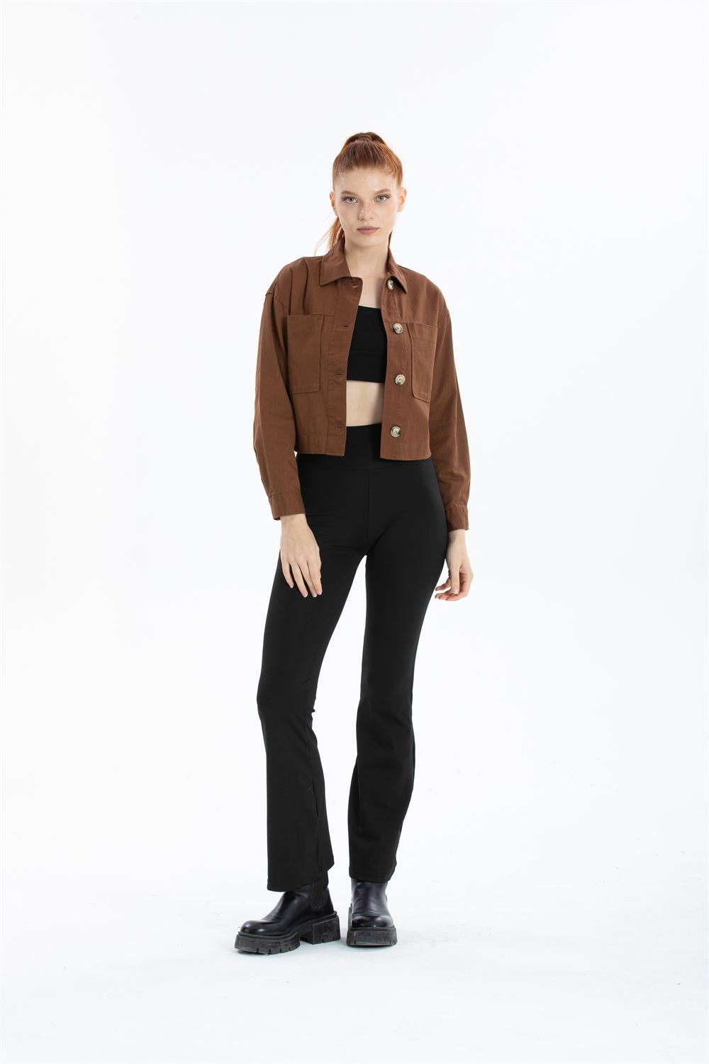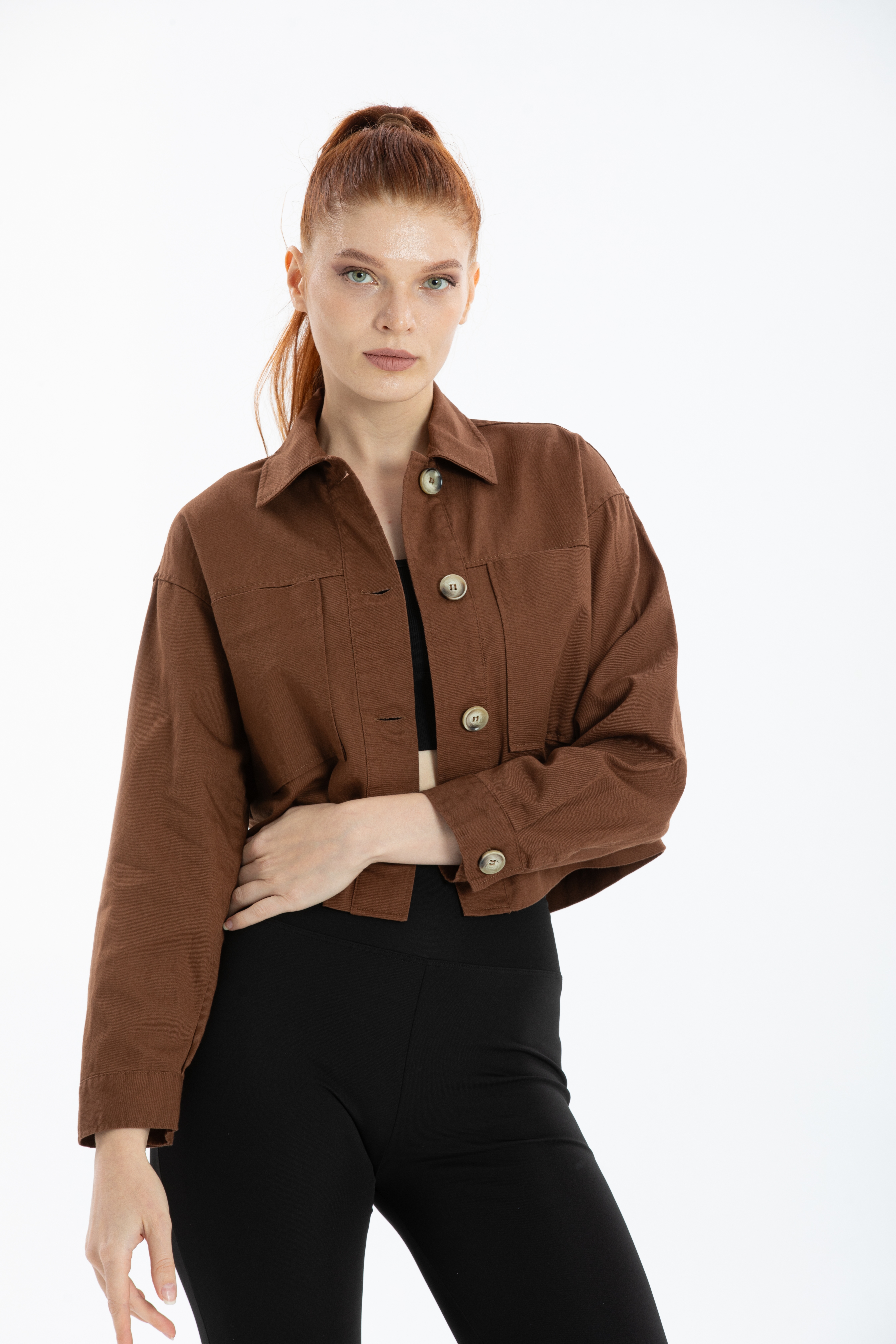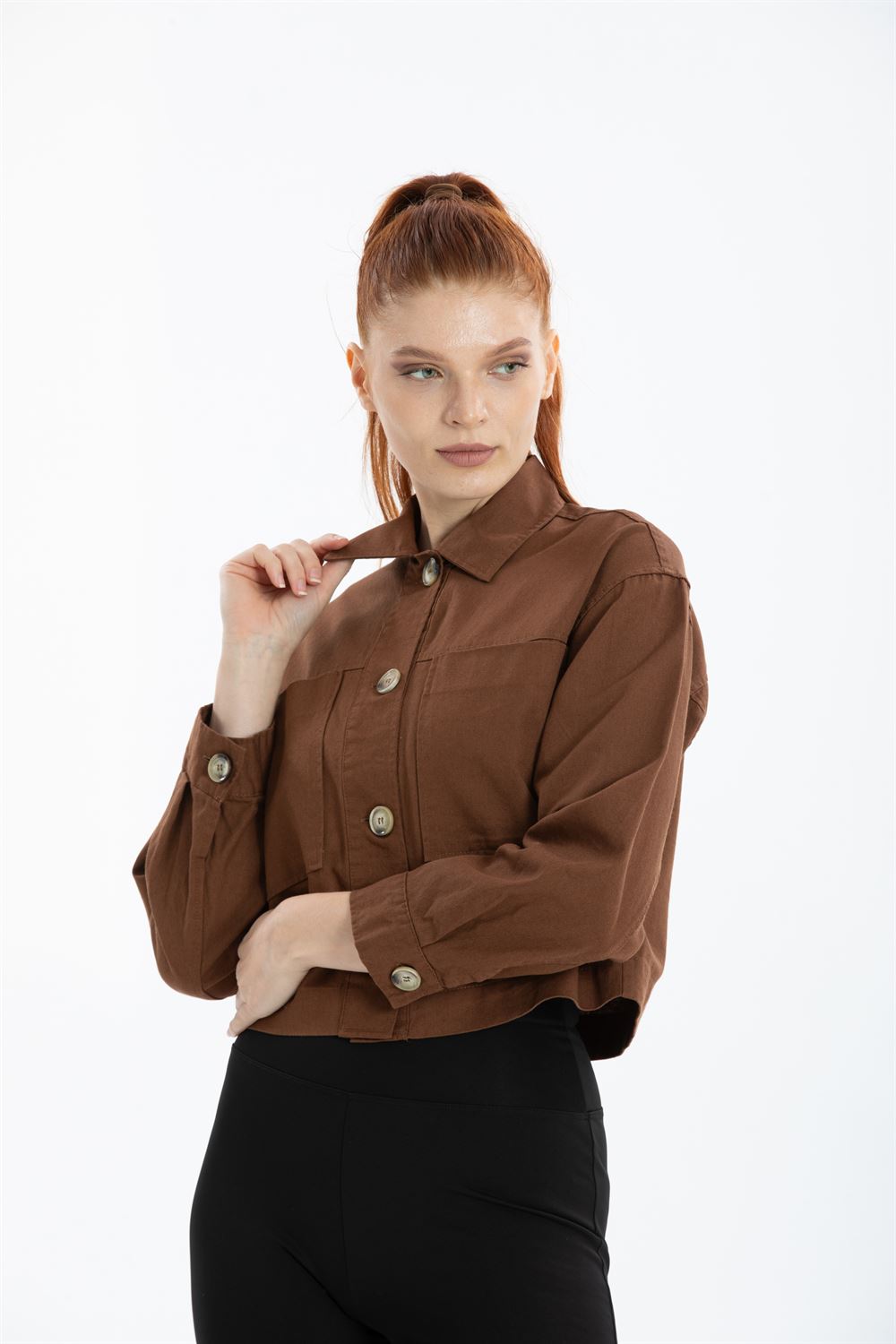 Çift Cepli Crop Ceket