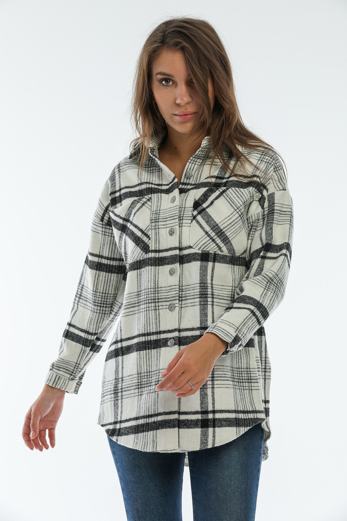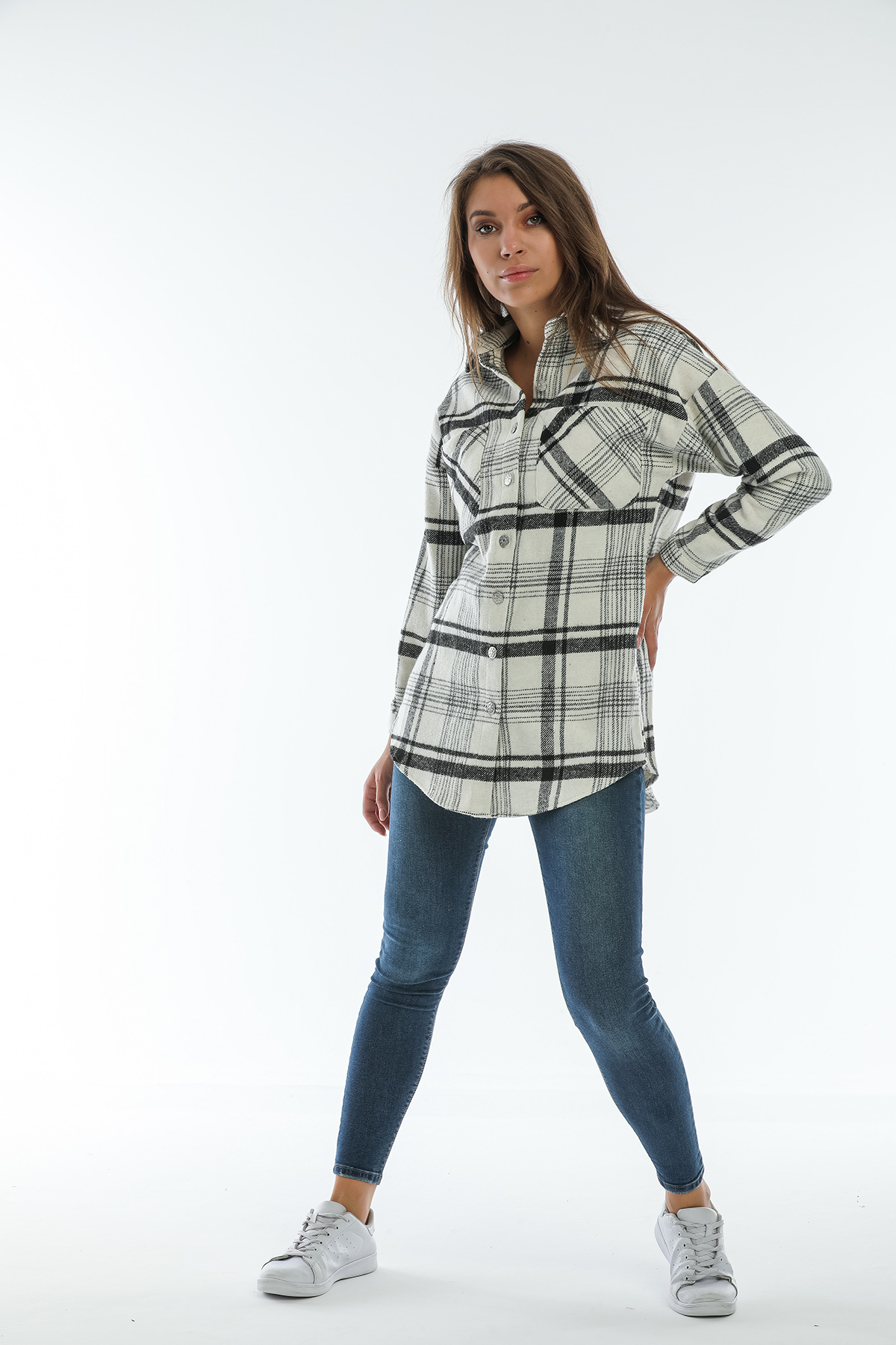 Ürün Özellikleri: Klasik yaka, tahta düğmeli, bol kalıp, cep detaylı uzun kollu oduncu gömlek.