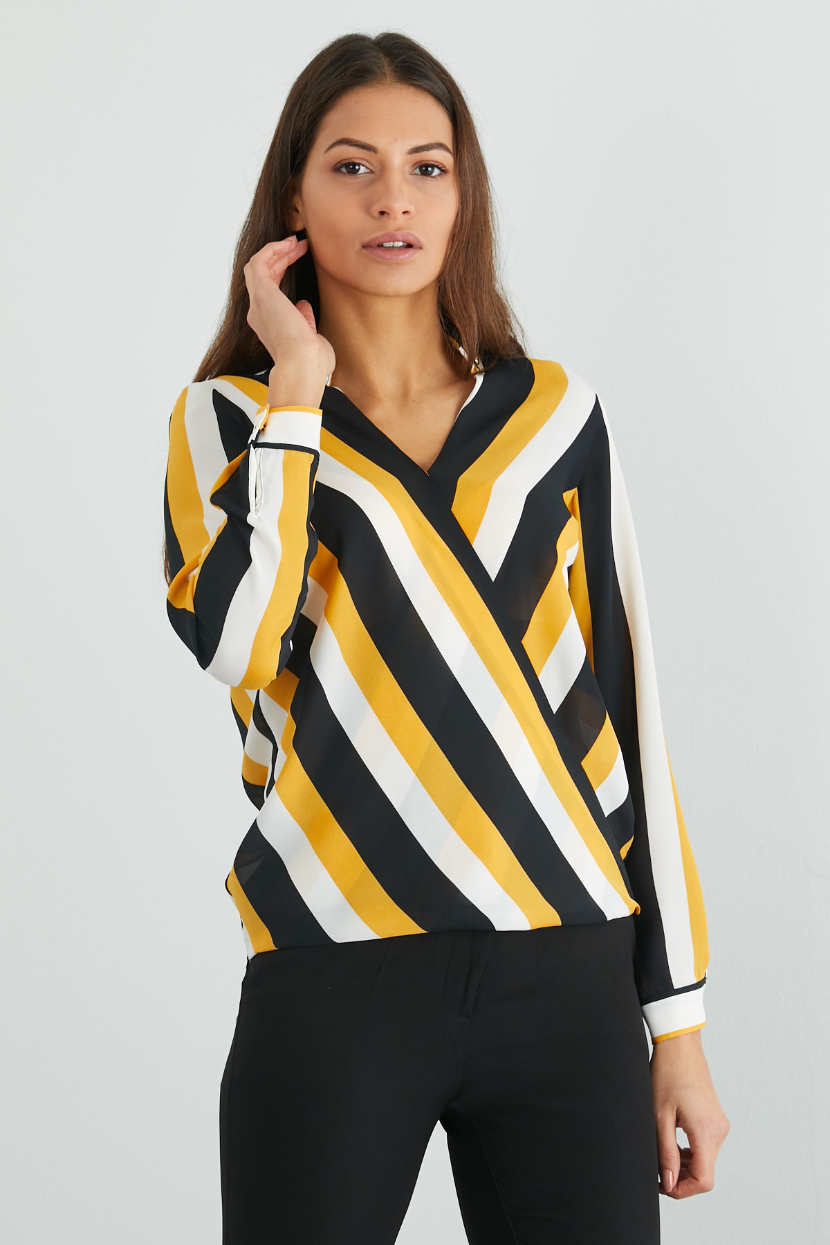 Dökümlü Degaje Yaka İç Göstermeyen Kısa Sıfır Kollu Bluz Gömlek