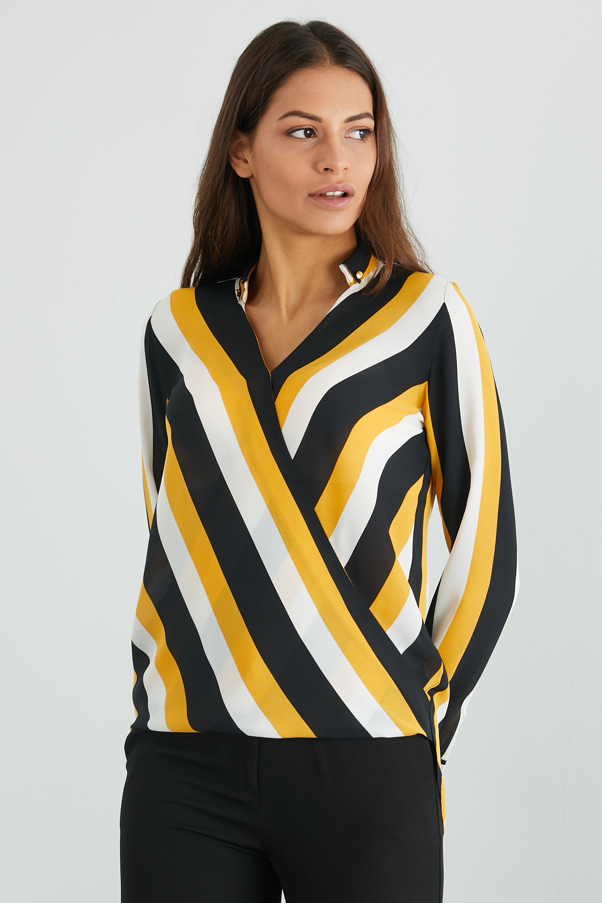 Çift Renkli Kruvaze Yaka Bluz