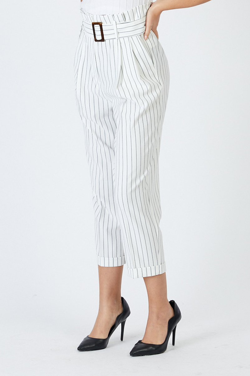 Ürün Özellikleri: Yüksek bel, kemer detaylı, ön cepli, kıvrılmış paça detaylı, havuç kesim, düğme-fermuarlı kapama pantolon.