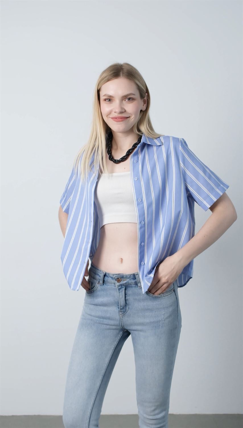 Kadın Basic Gizli Düğme Özellikli Gömlek