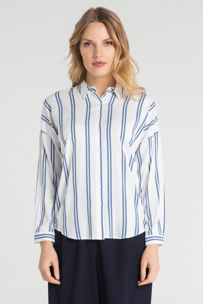 Ürün Özellikleri: Klasik yaka, beyaz düğmeli, bol kalıp, uzun kollu gömlek.
