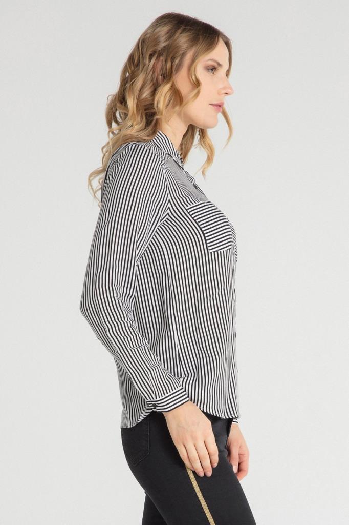 Ürün Özellikleri: Klasik yaka, siyah düğmeli, cep detaylı, bol kalıp, uzun kollu gömlek.