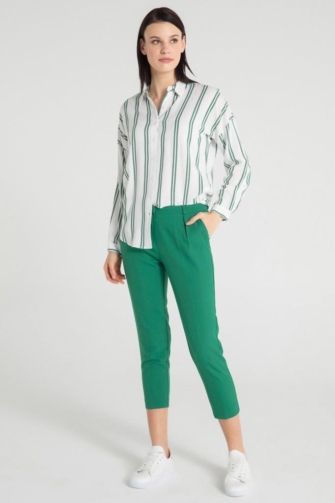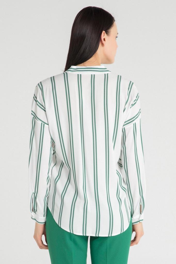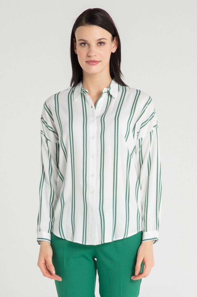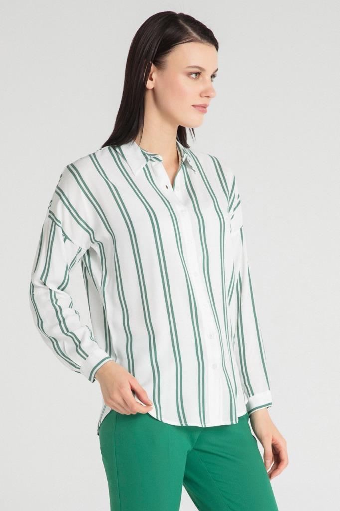 Ürün Özellikleri: Klasik yaka, beyaz düğmeli, bol kalıp, uzun kollu gömlek.