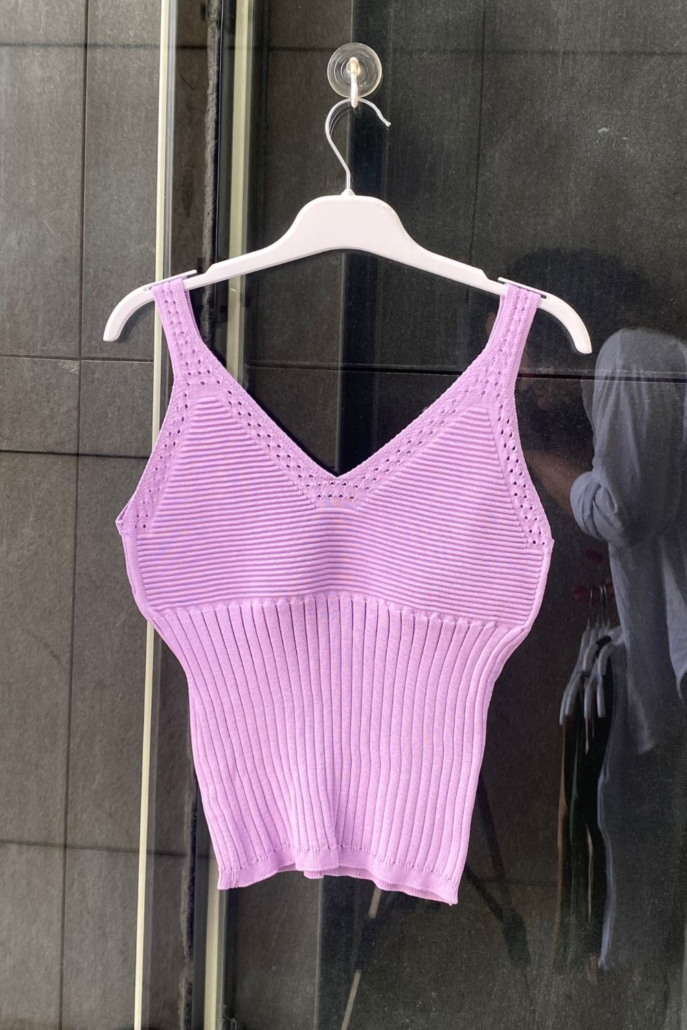 Crop V Yaka Yazlık Esnek Kumaş Triko Bluz