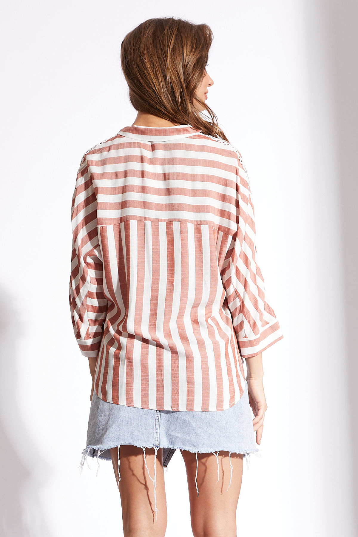 Dantel Detaylı Fakir Kol Çizgili Gömlek
