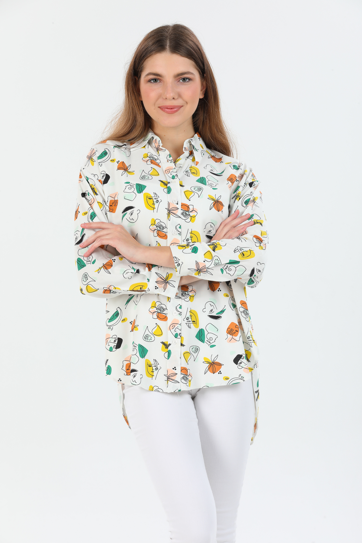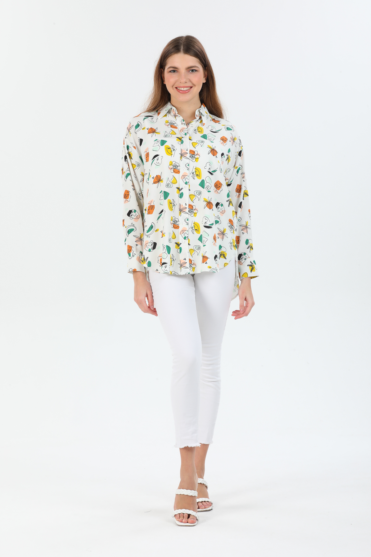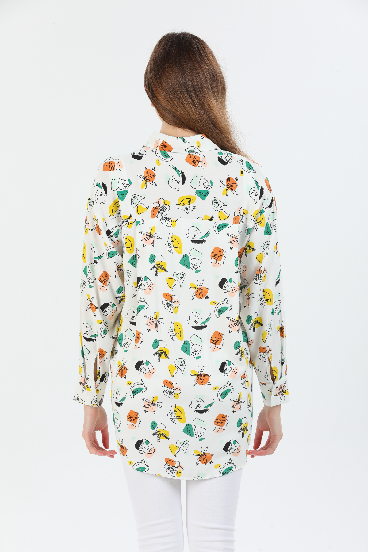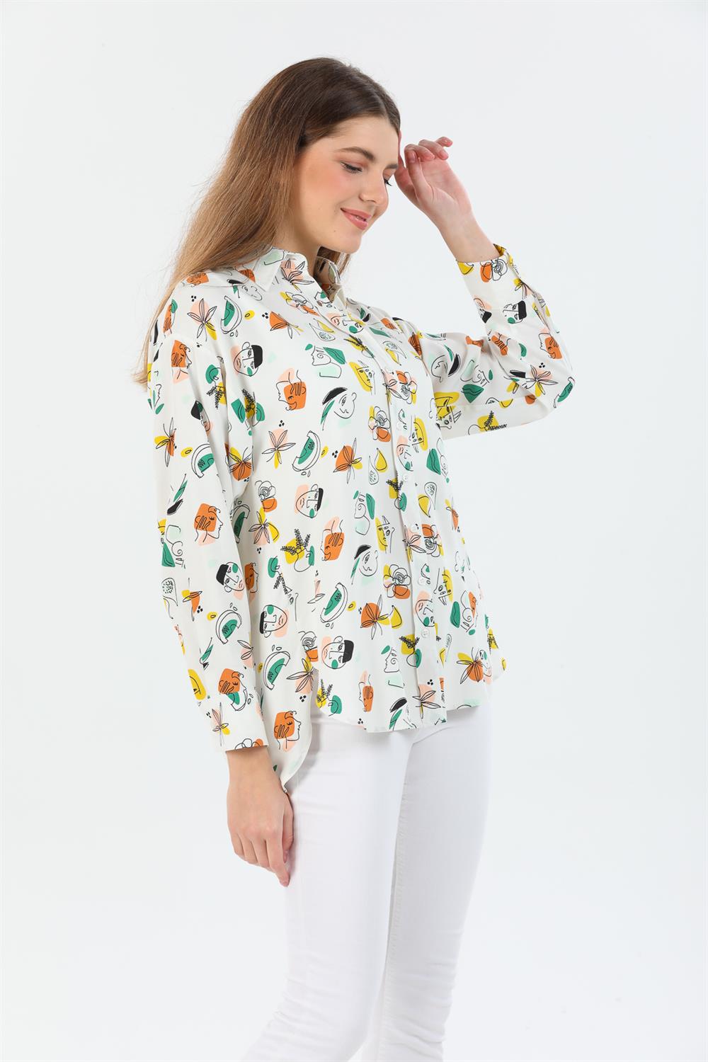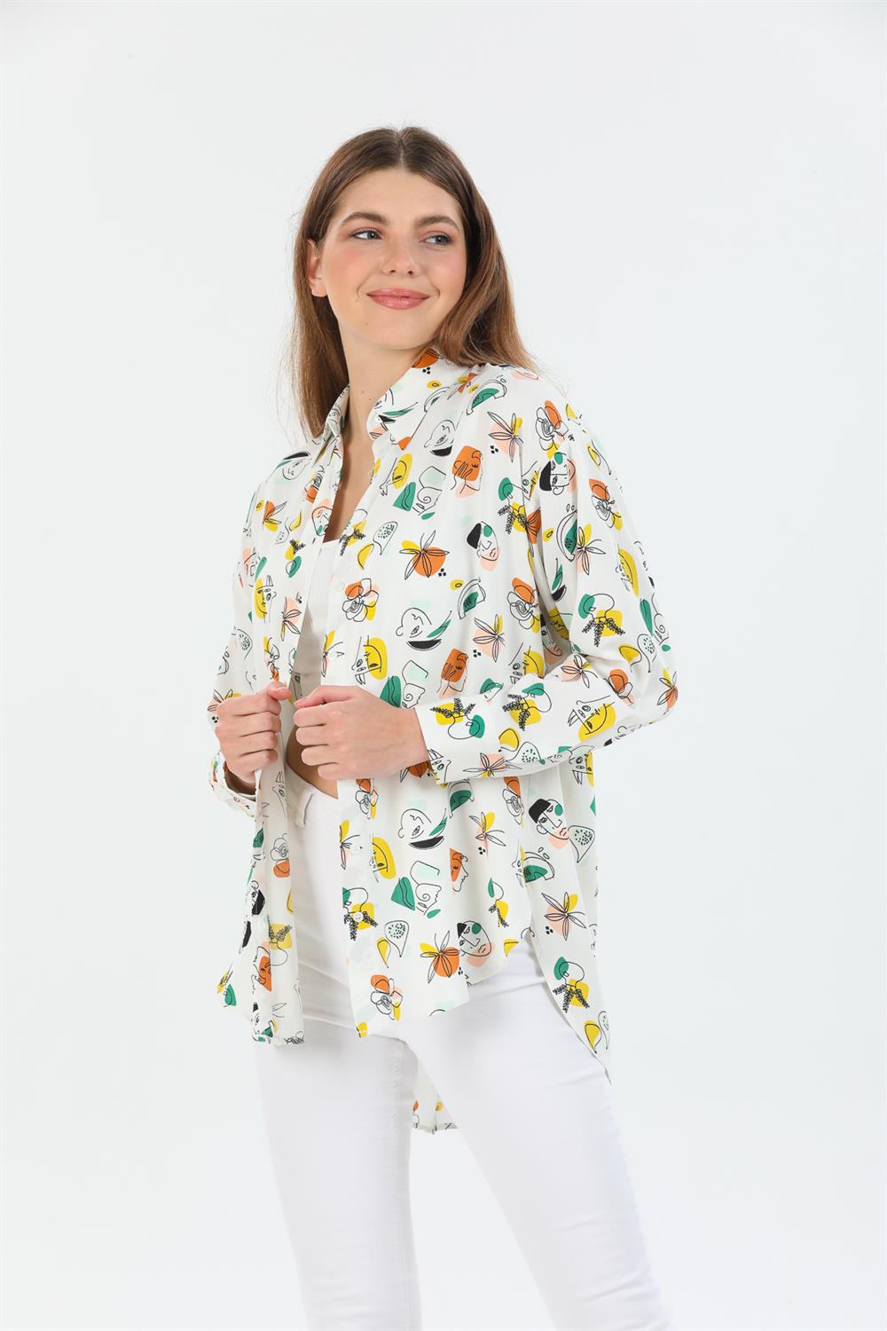 Desenli Oversize Viskon Gömlek