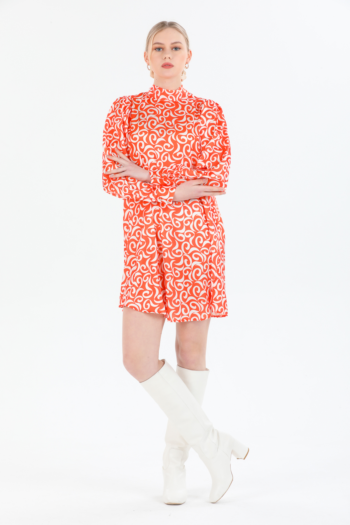 Desenli Saten Elbise