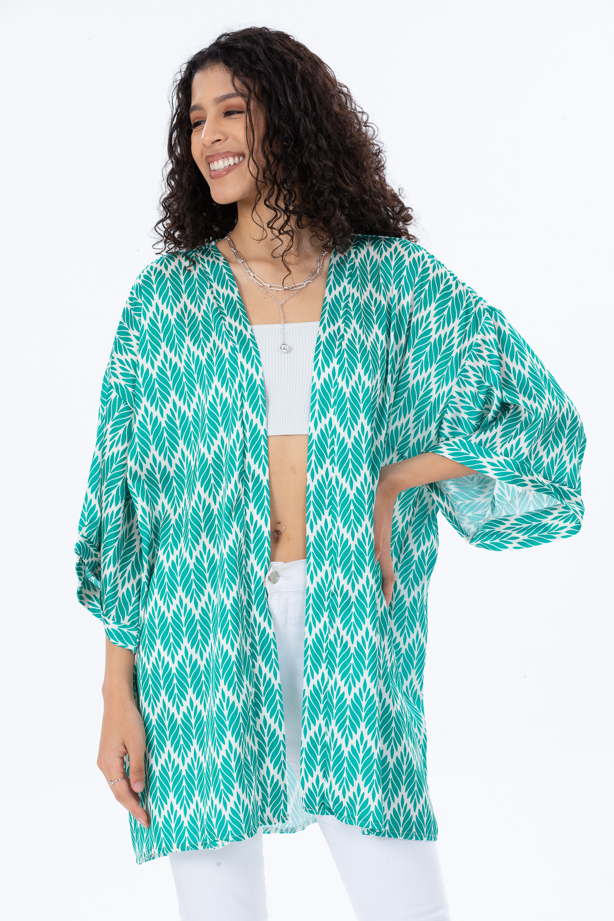 Desenli Saten Kimono