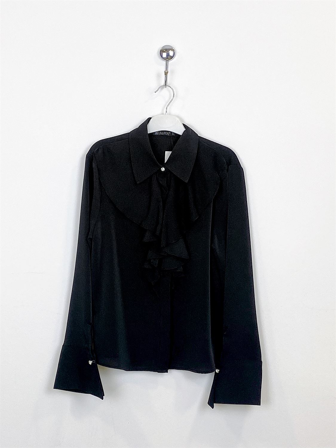 Dökümlü Fırfır Yaka Büyük Beden Bluz