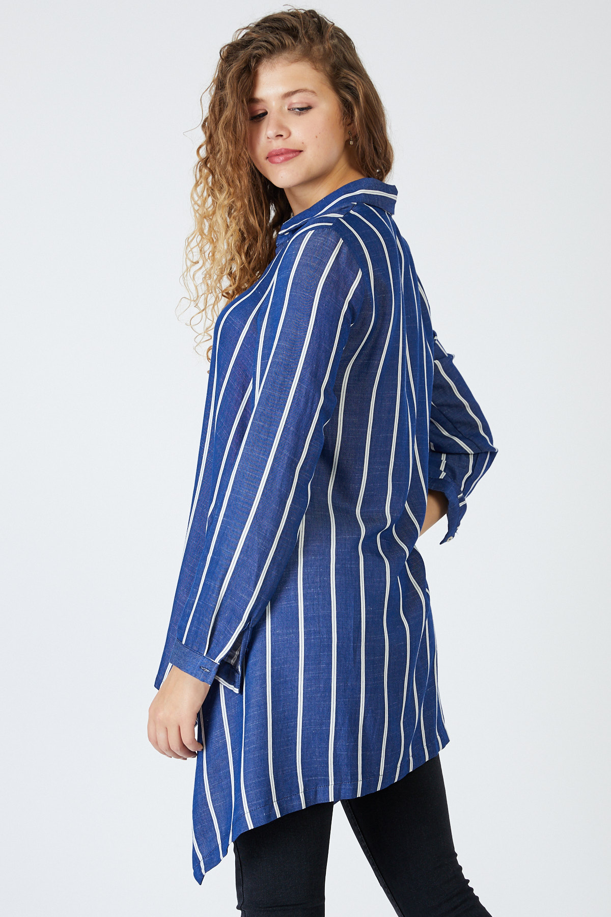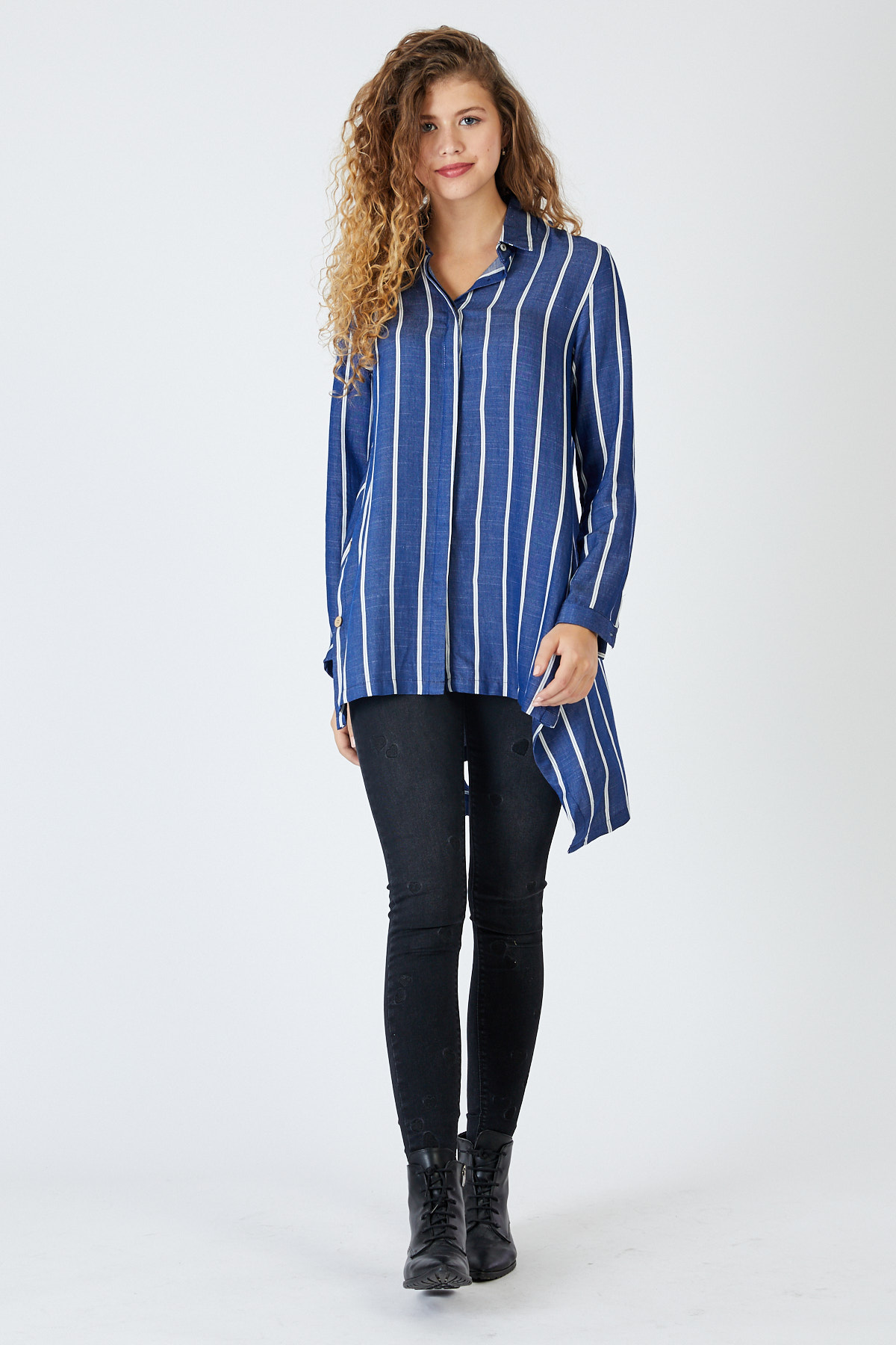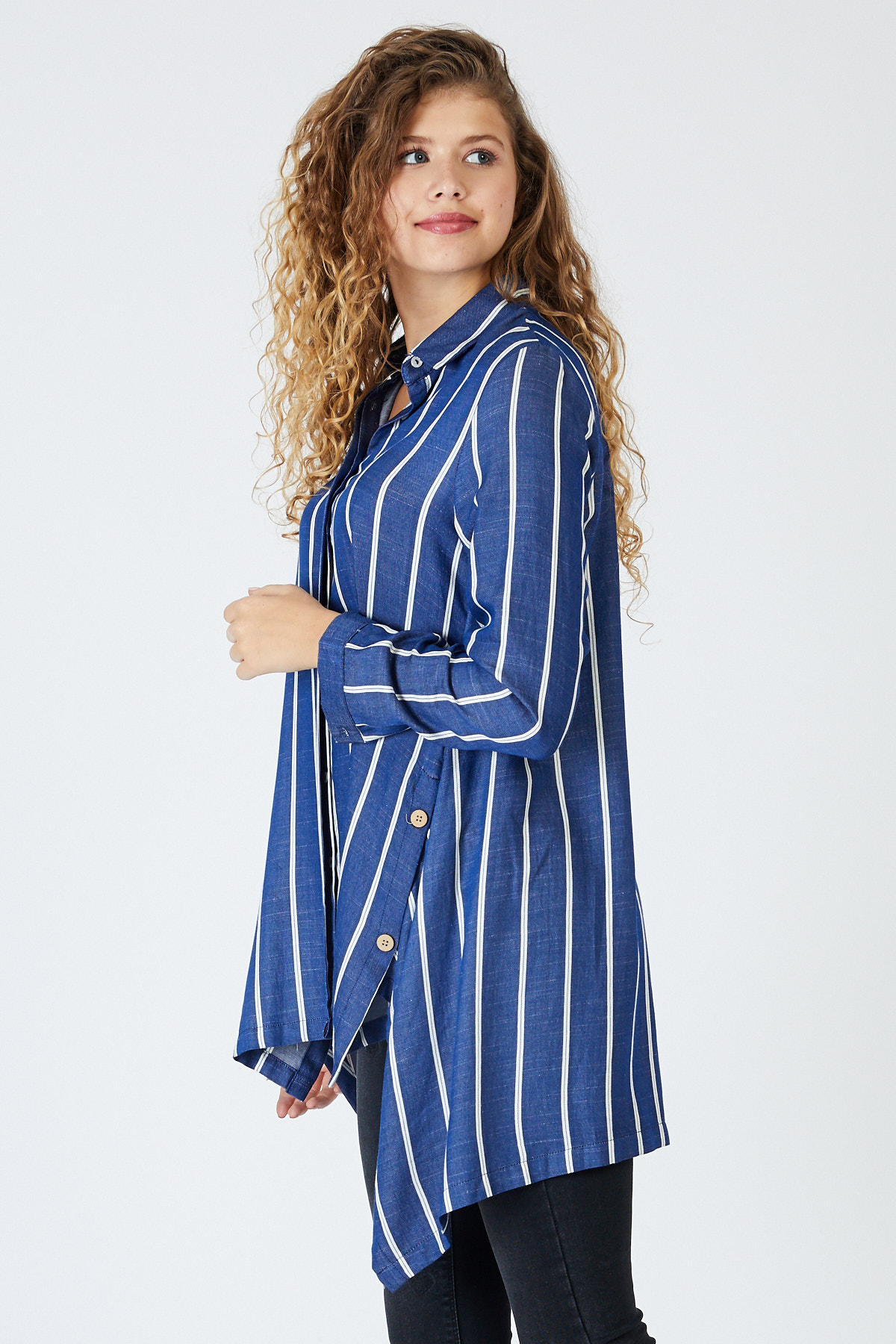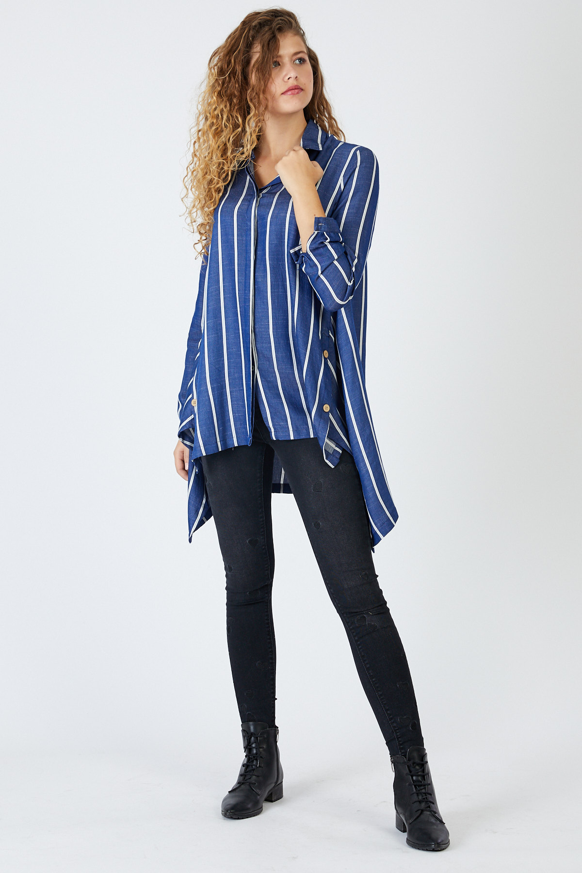 Ürün Özellikleri: Klasik yaka, gizli düğme iliklemeli, yanları yırtmaçlı düğme detaylı, önü kısa arkası uzun tunik elbise.