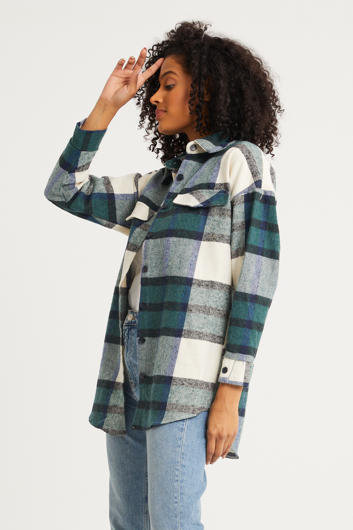 Düğmeli Çift Cep Detaylı Oduncu Gömlek