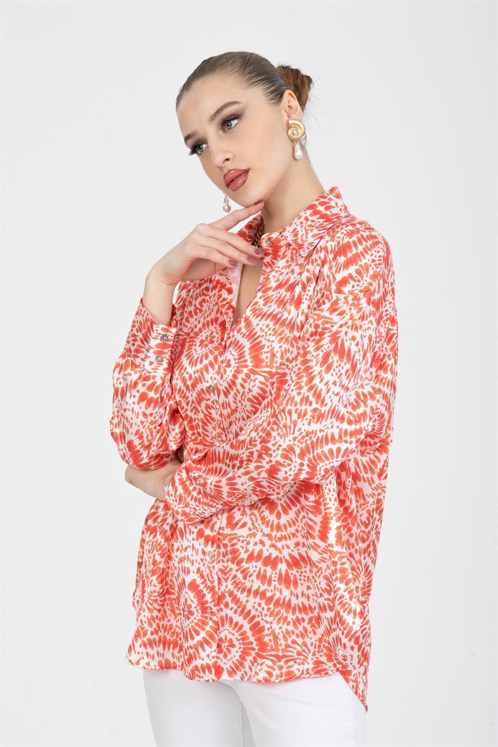 Kadın Gizli Düğme Özellikli Cepli Tunik Gömlek