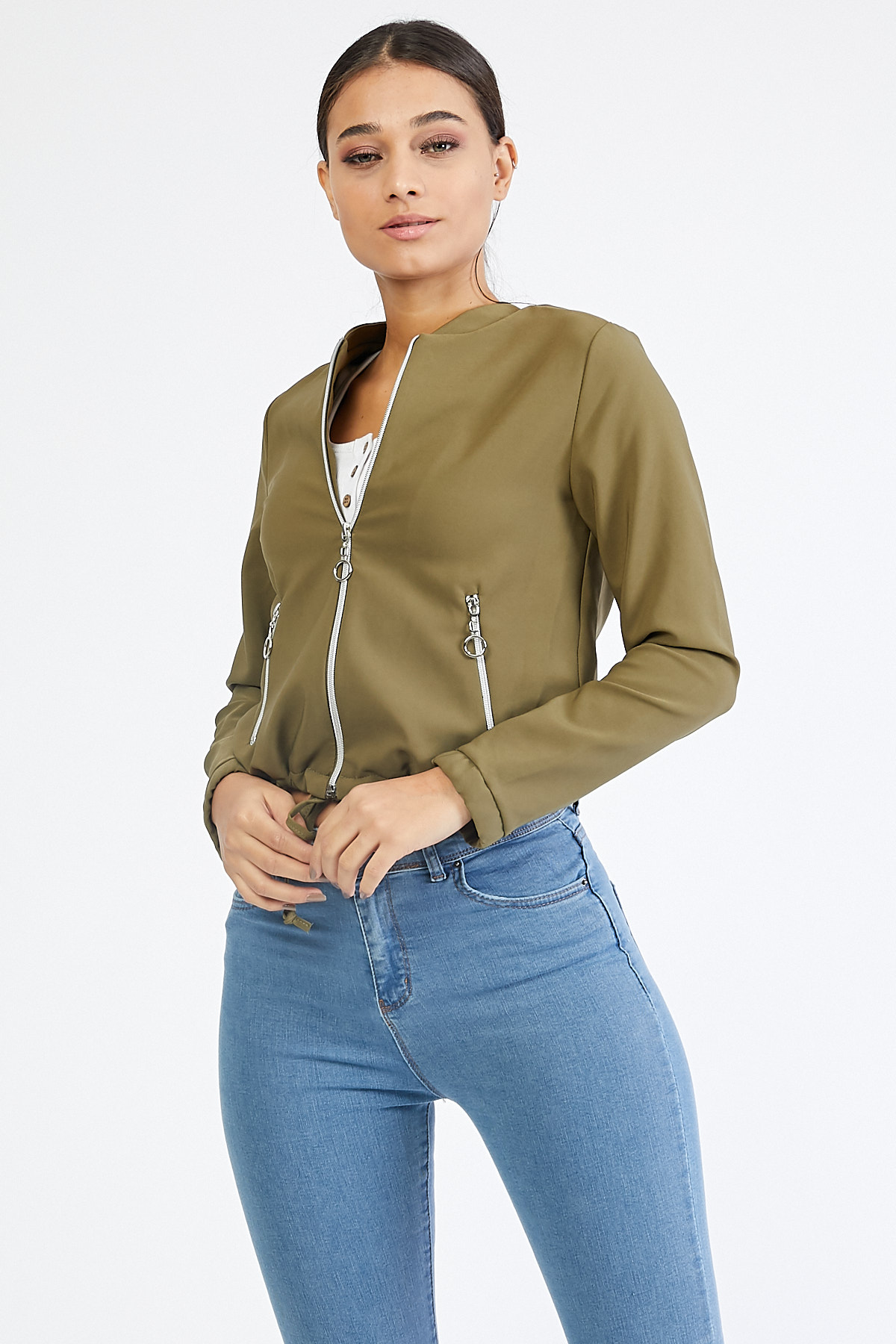 Ürün Özellikleri:Fermuarlı, büzgü detaylı, tam kalıp, crop kesim, uzun kollu hırka.