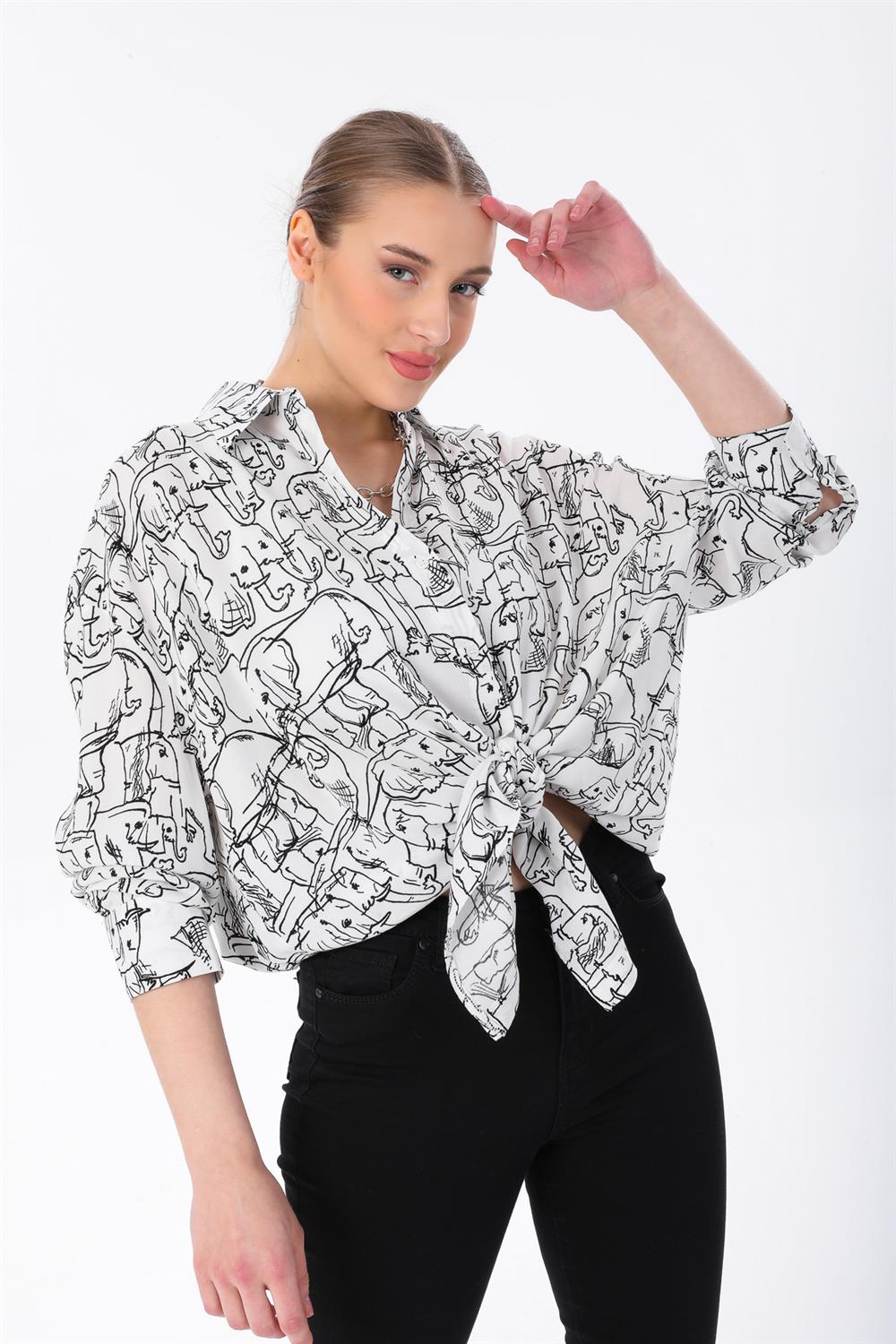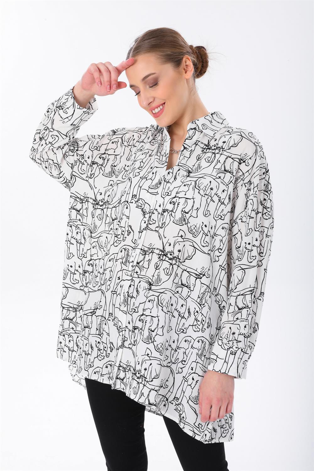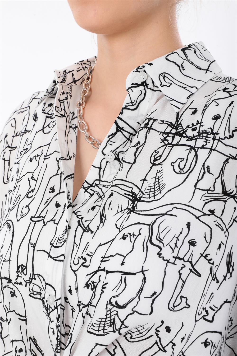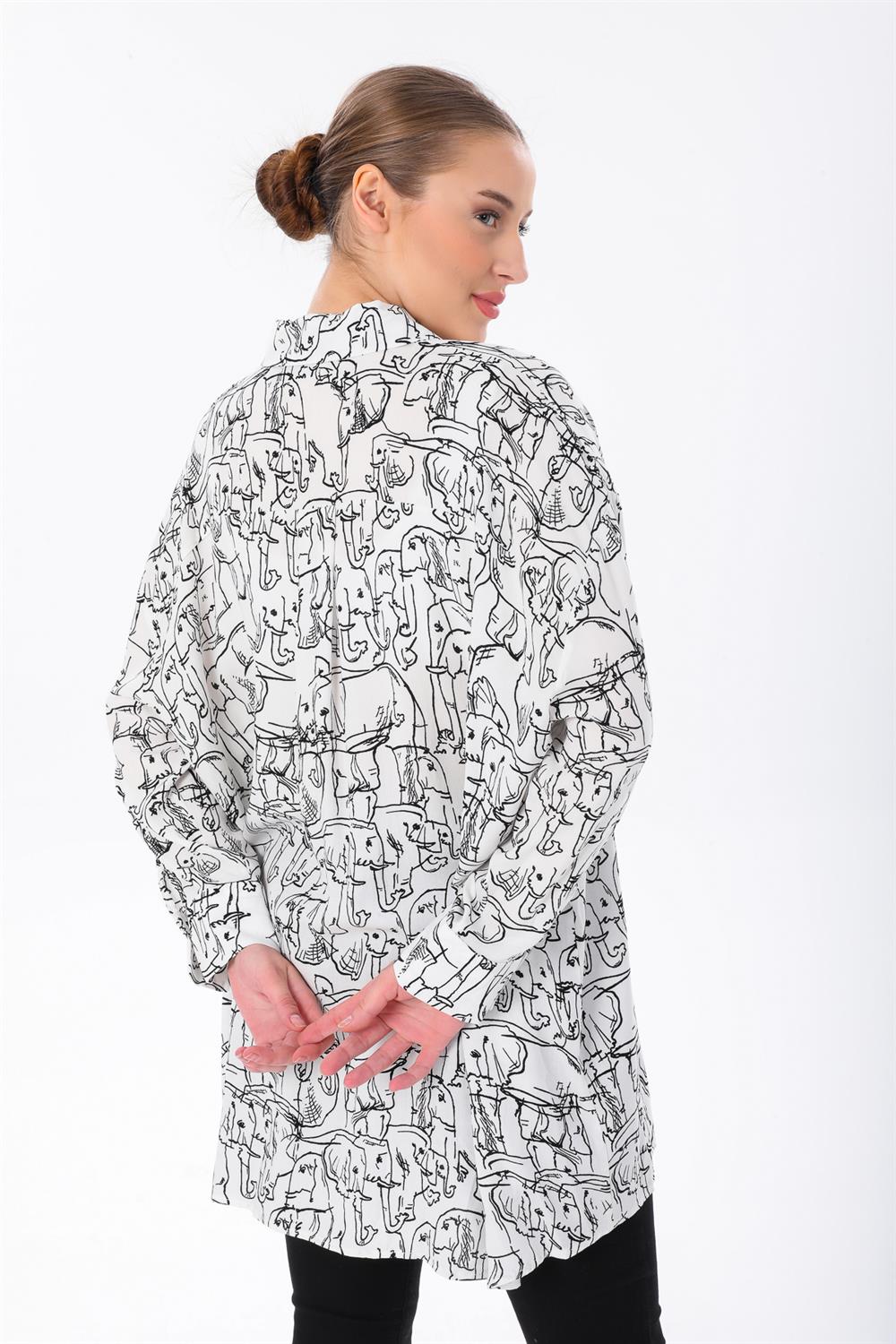 Fil Desenli Oversize Gömlek
