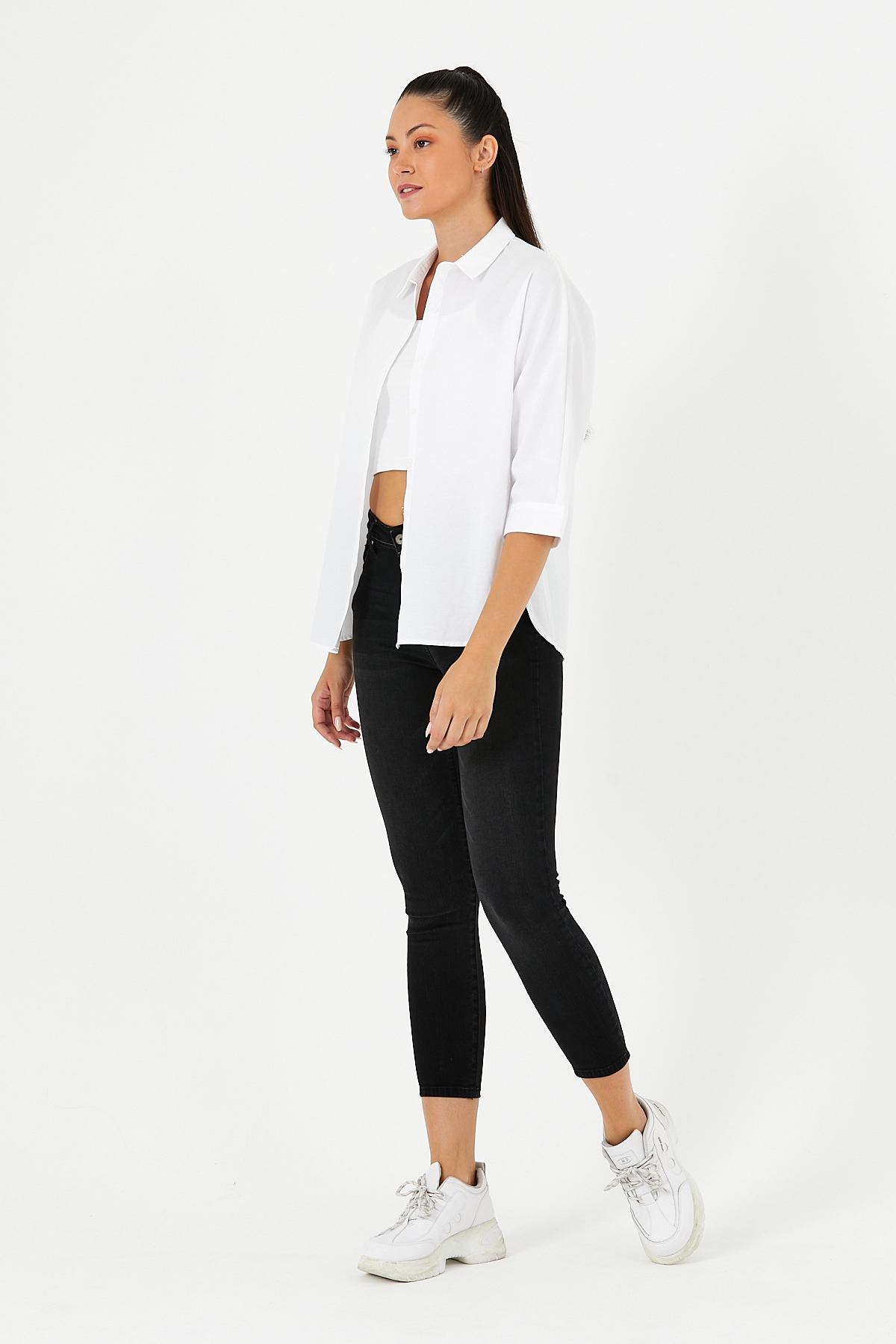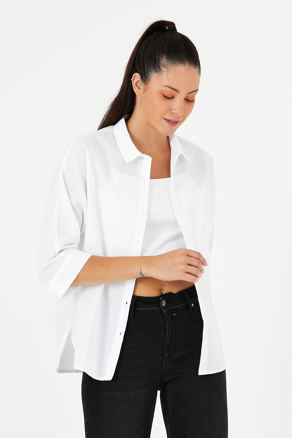Gizli Düğme Detaylı Basic Gömlek