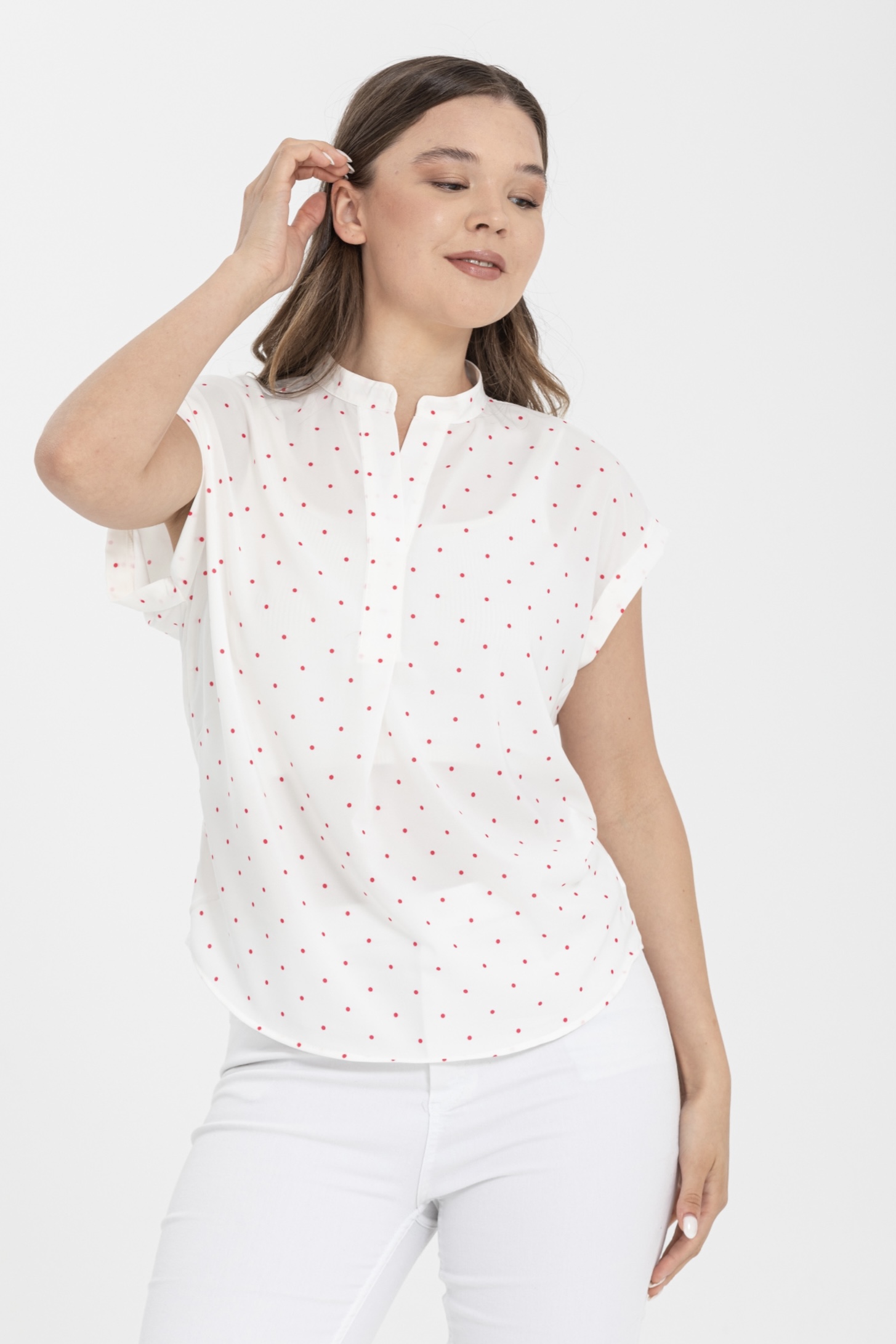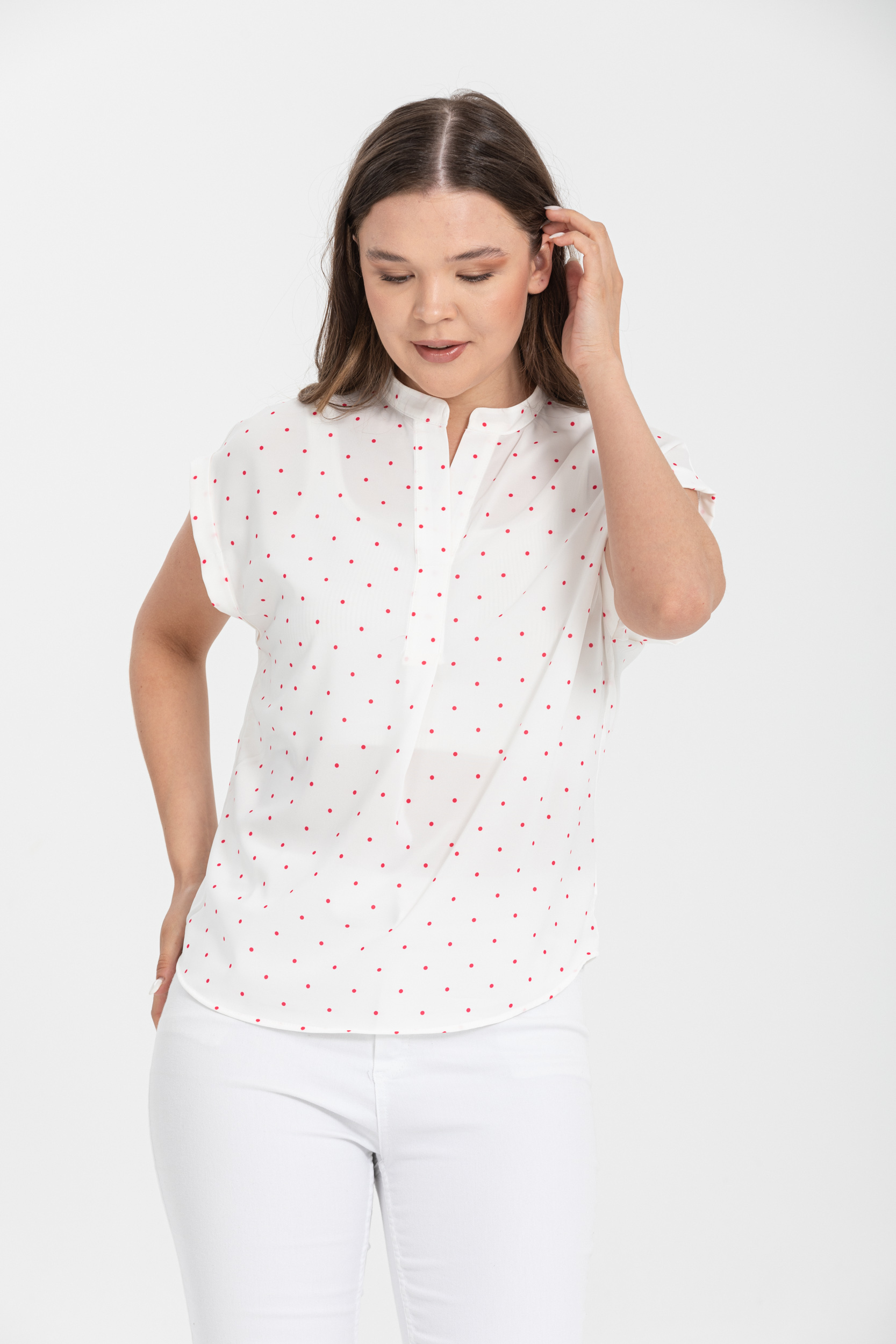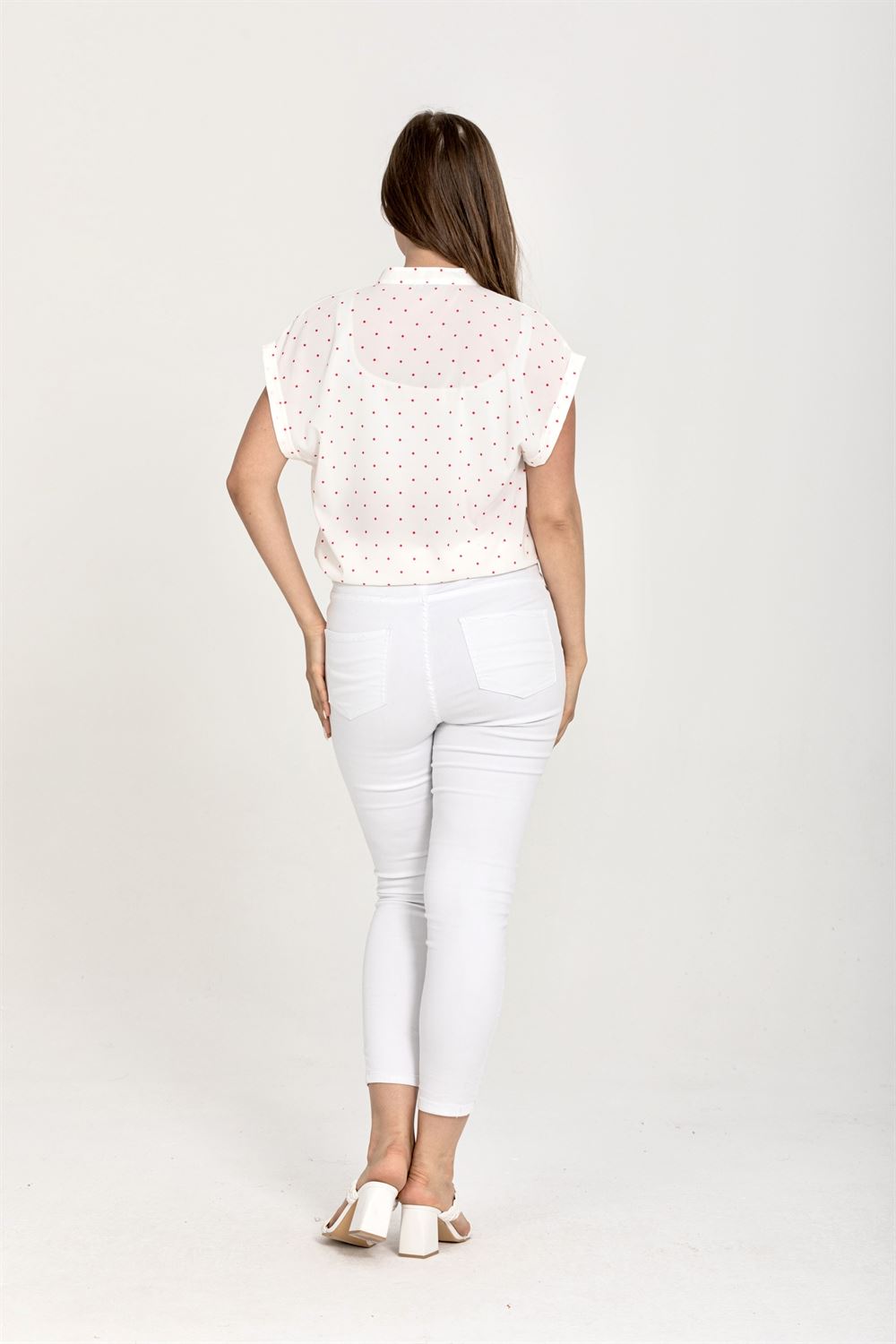 Puantiyeli desenler, gömleğe neşeli ve canlı bir görünüm kazandırır. Klasik bir desen olmasına rağmen her zaman moda olan puantiyeler, zamansız bir şıklık sunar. Bu gömlek, puantiyelerin sizi enerjik ve stil sahibi göstermesini sağlar.