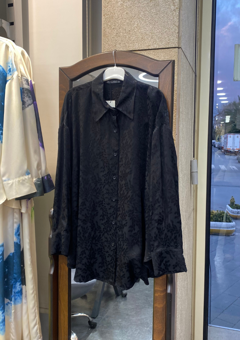İç Göstermeyen Jakarlı Oversize Uzun Şık Kadın Gömlek