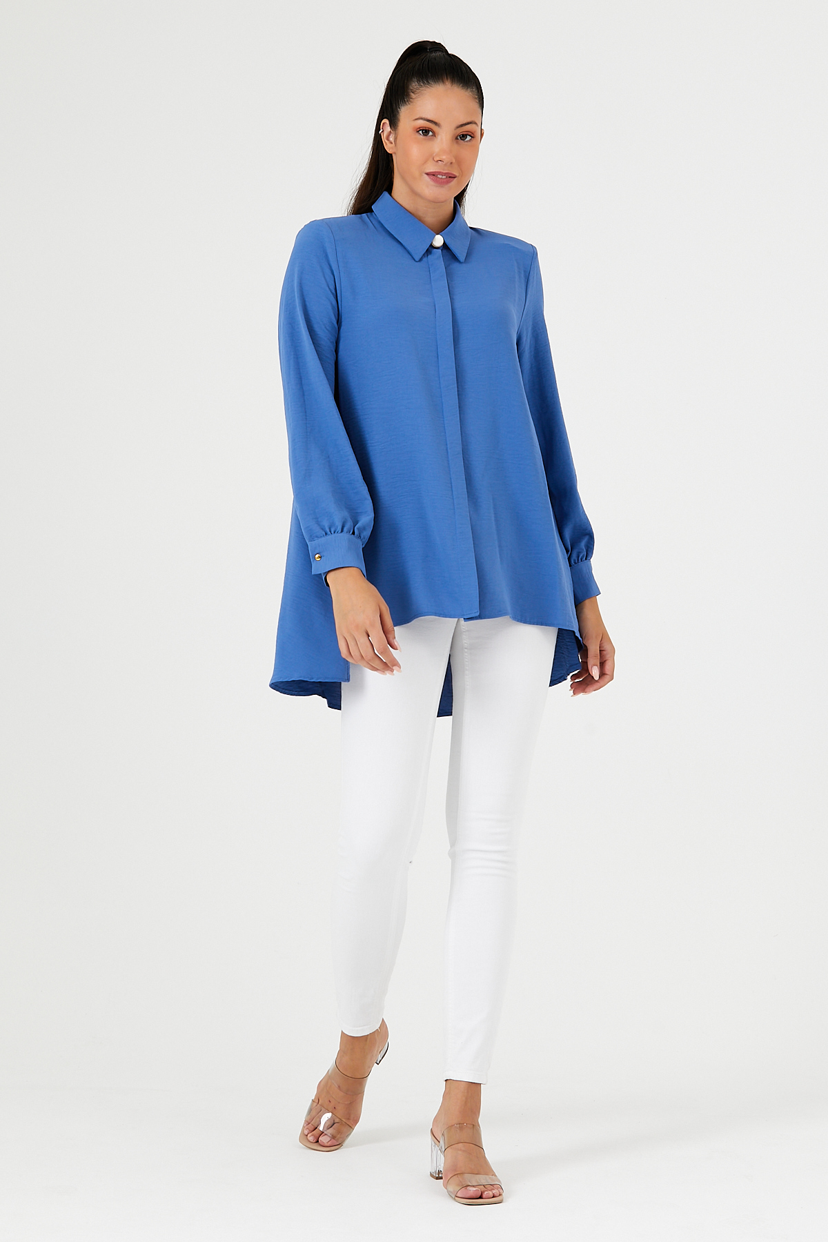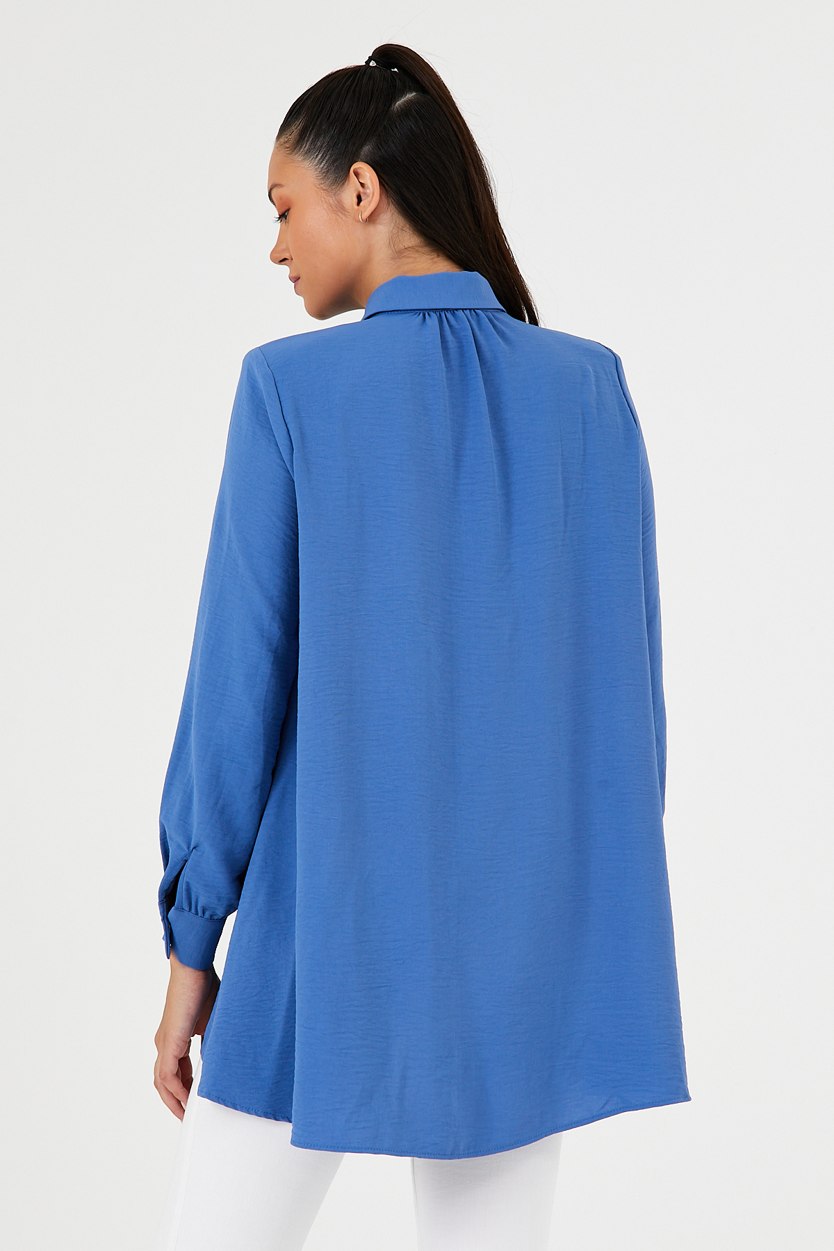 Kadın Gizli Düğme Özellikli Cepli Tunik Gömlek