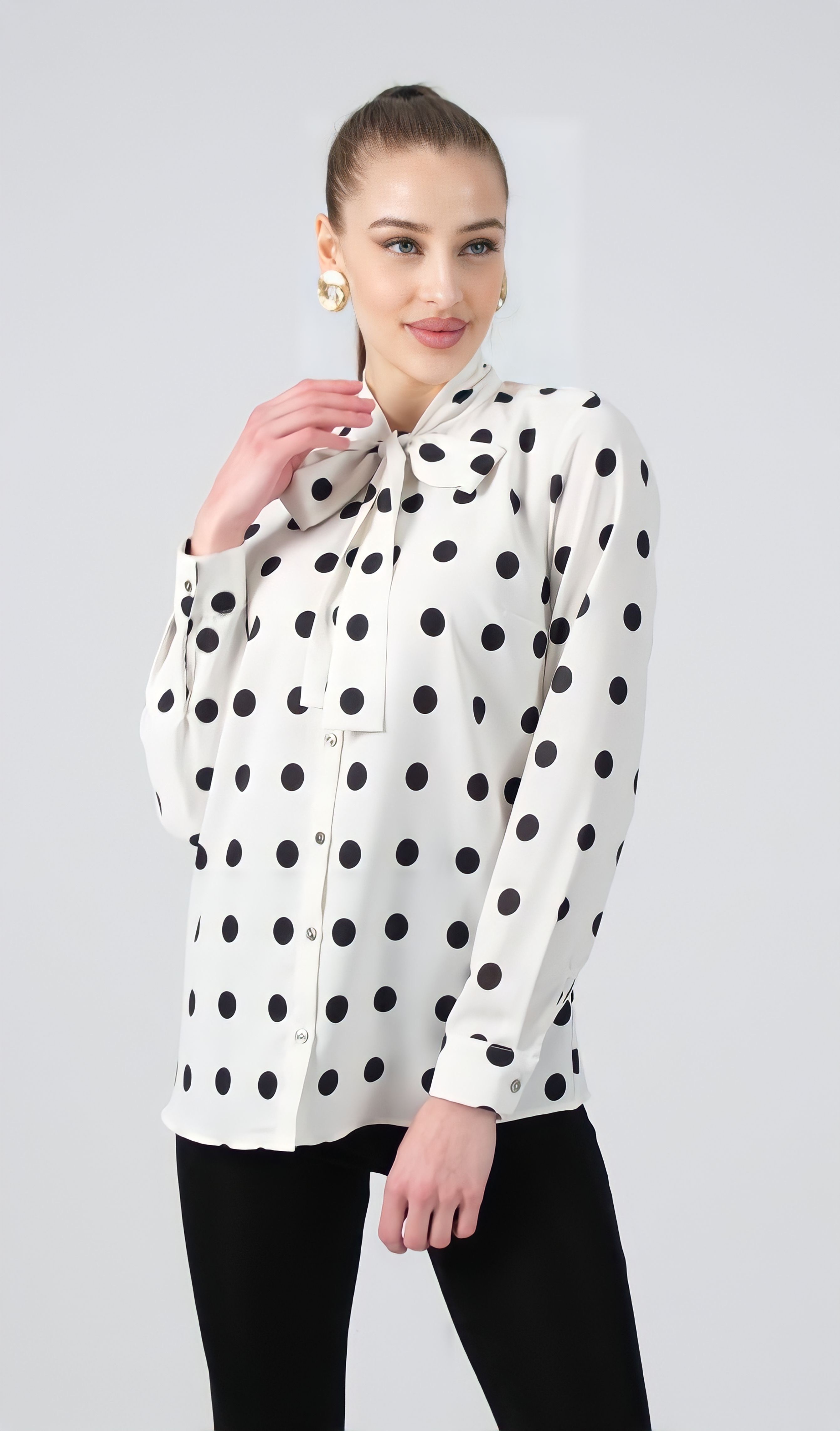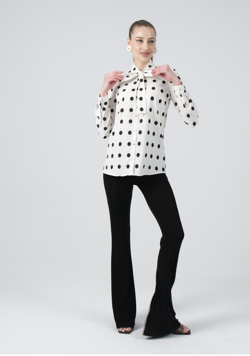 Jessica Kumaş Puantiyeli Fularlı Bluz