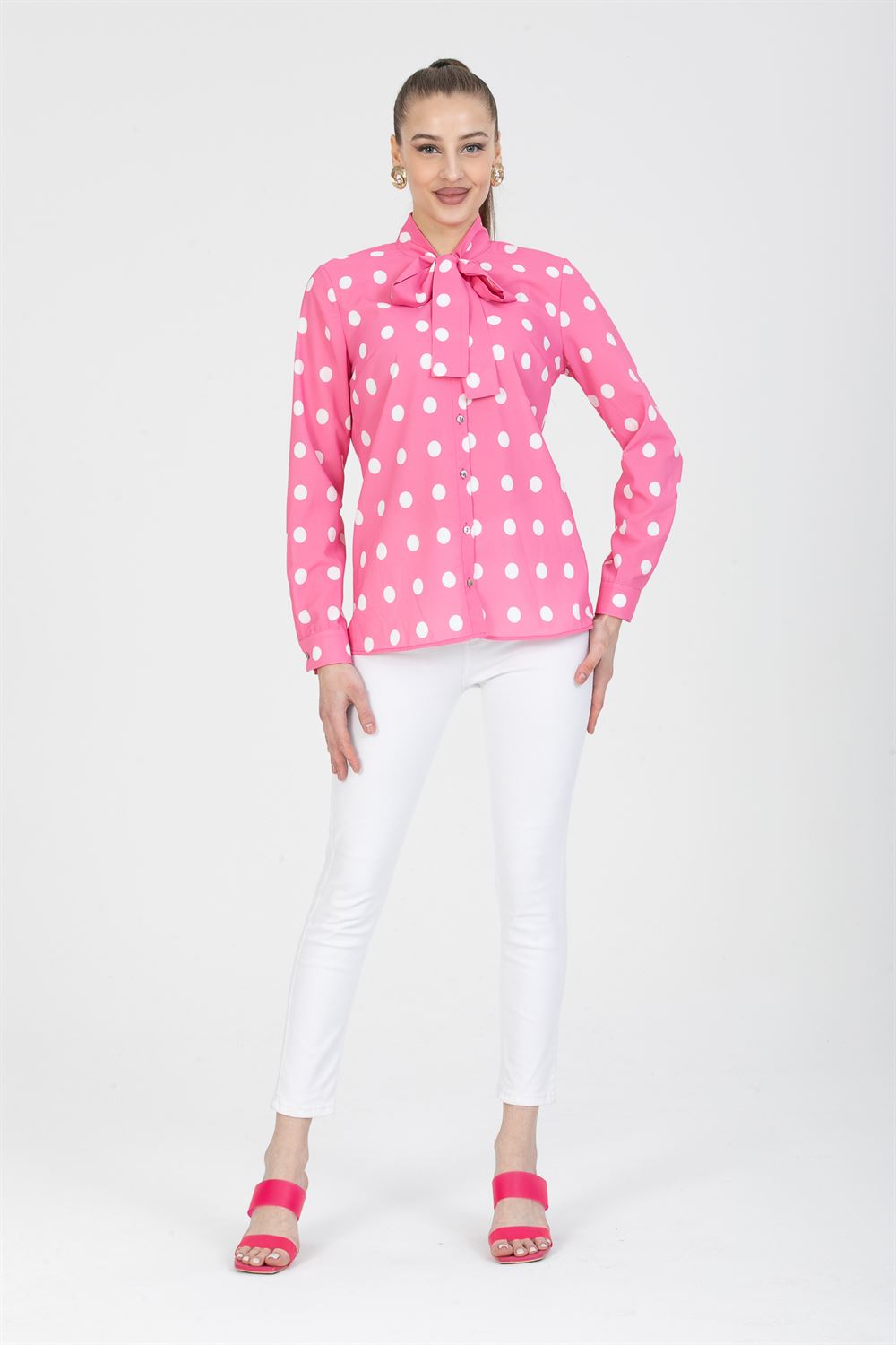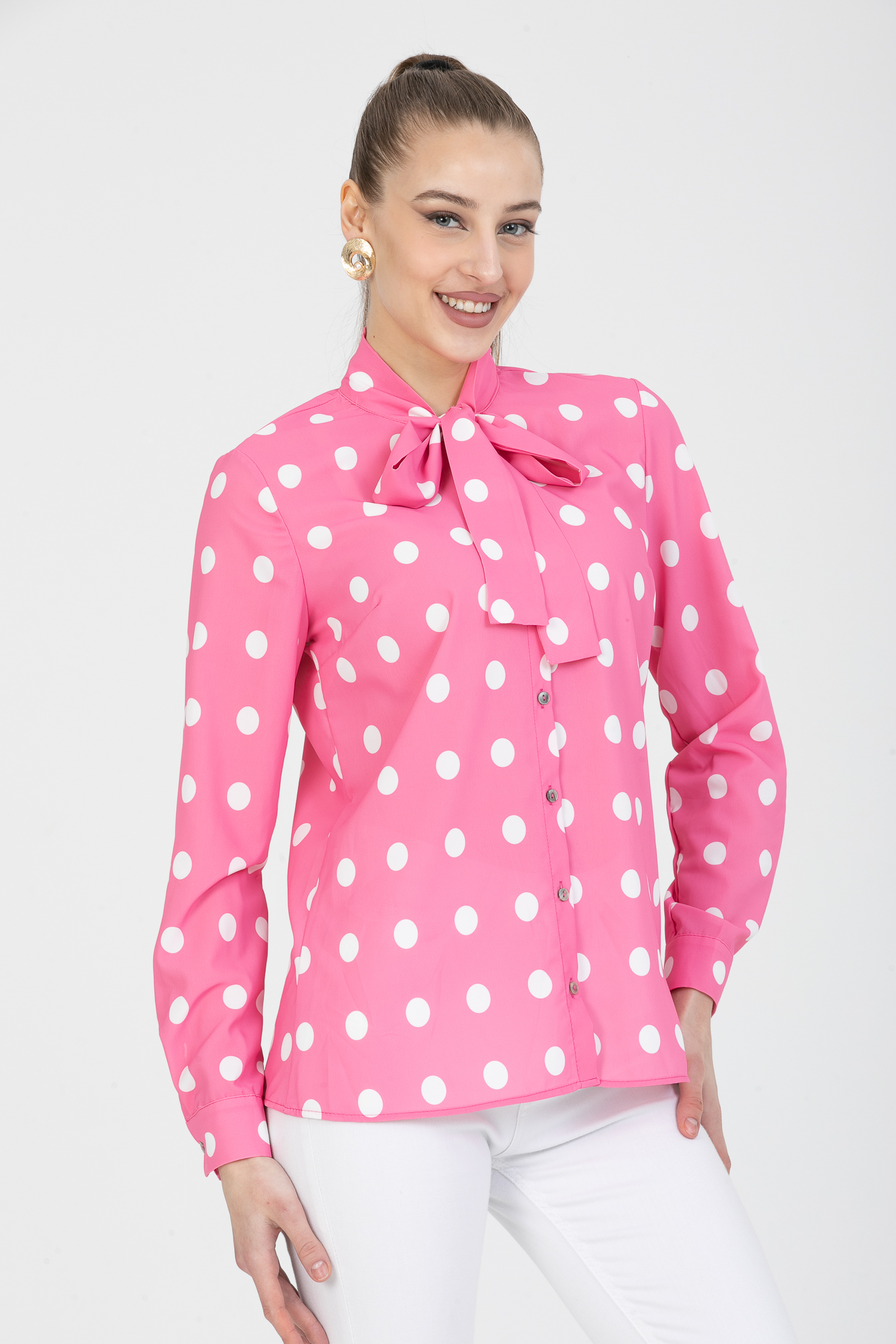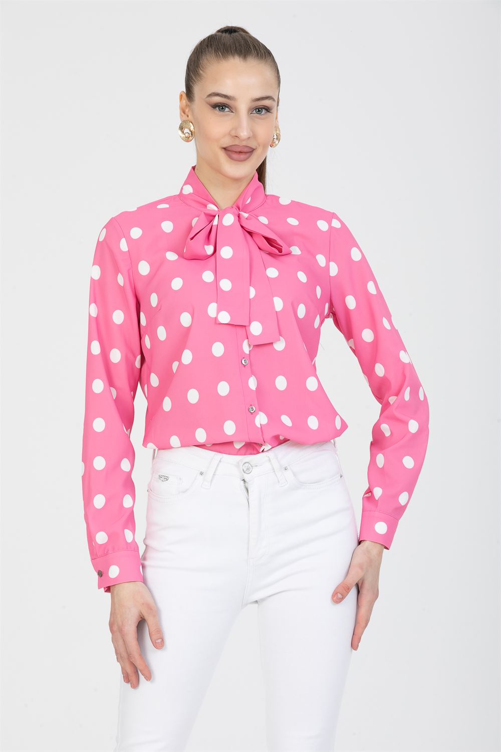 Jessica Kumaş Puantiyeli Fularlı Bluz