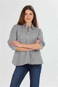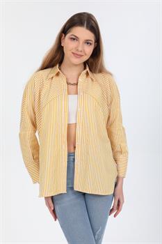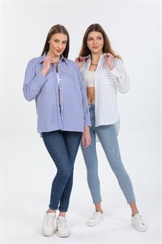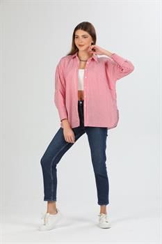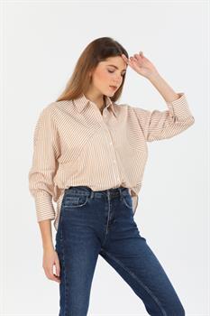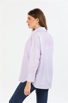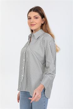 Kadın Asimetrik Çizgili Oversize Gömlek