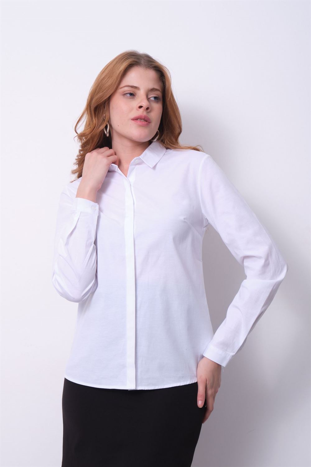 Kadın Basic Gizli Düğme Özellikli Gömlek