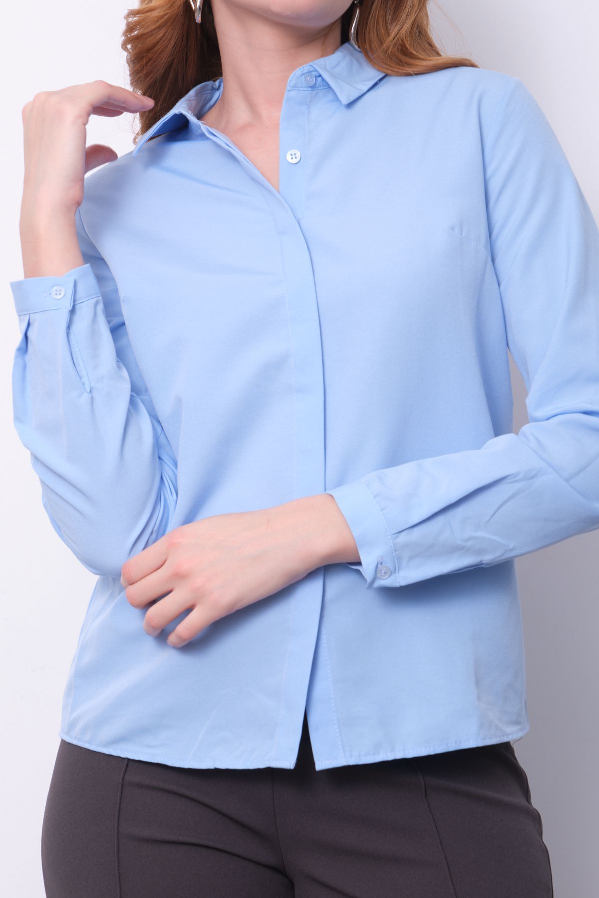 Ürün Özellikleri: Klasik yaka, gizli düğme iliklemeli, tam kalıp, uzun kollu gömlek.
