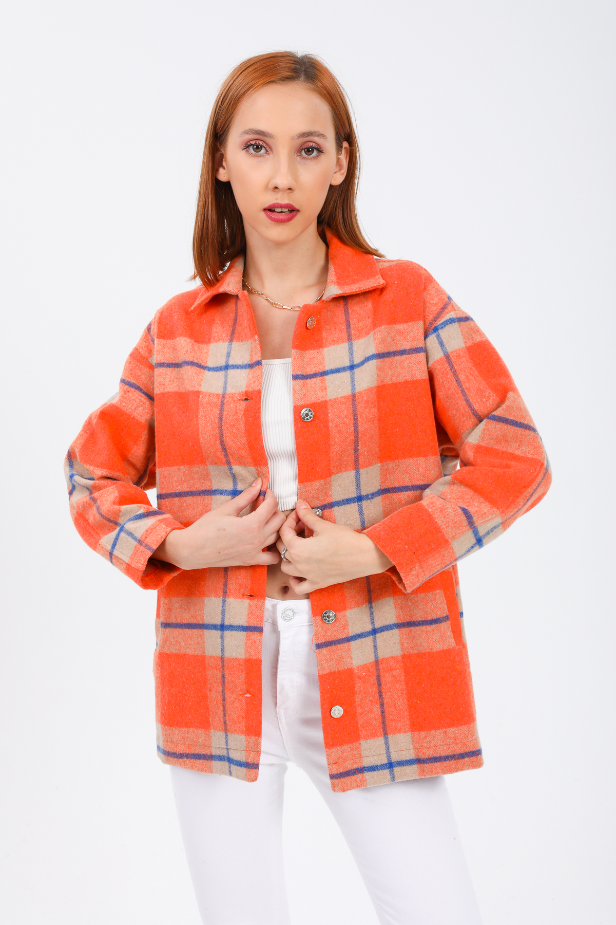 Kadın Ekose Desenli Oduncu Ceket