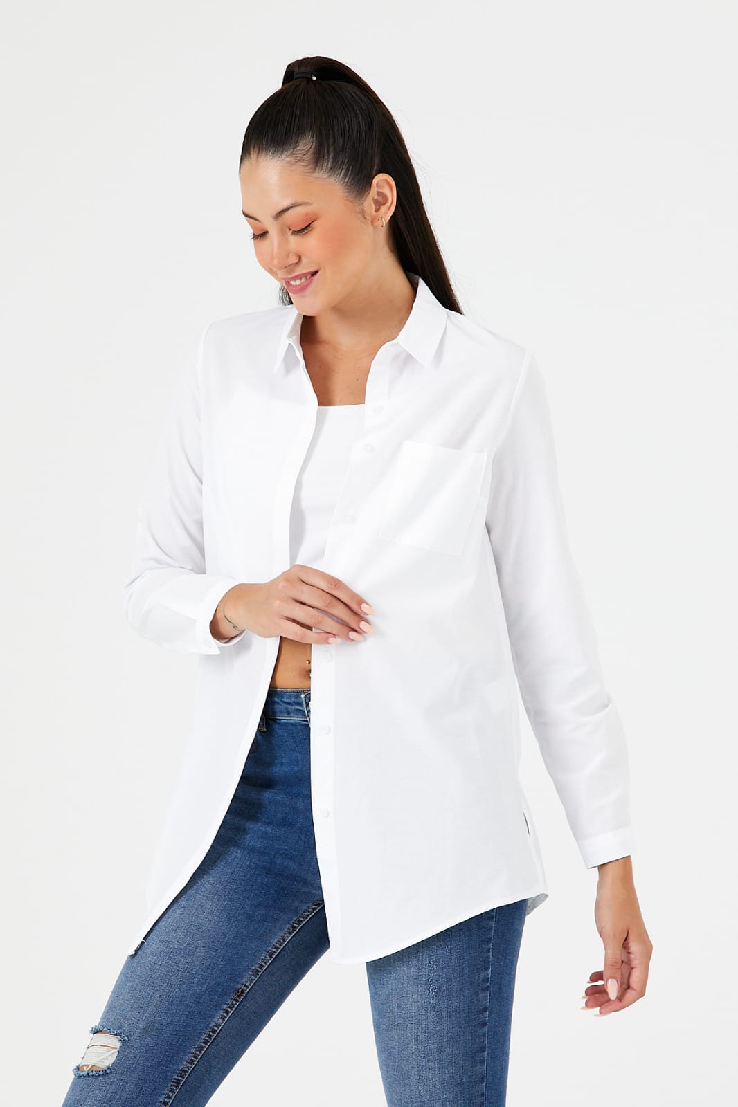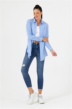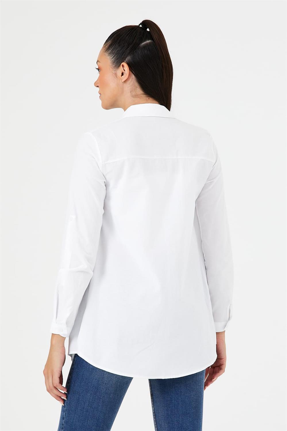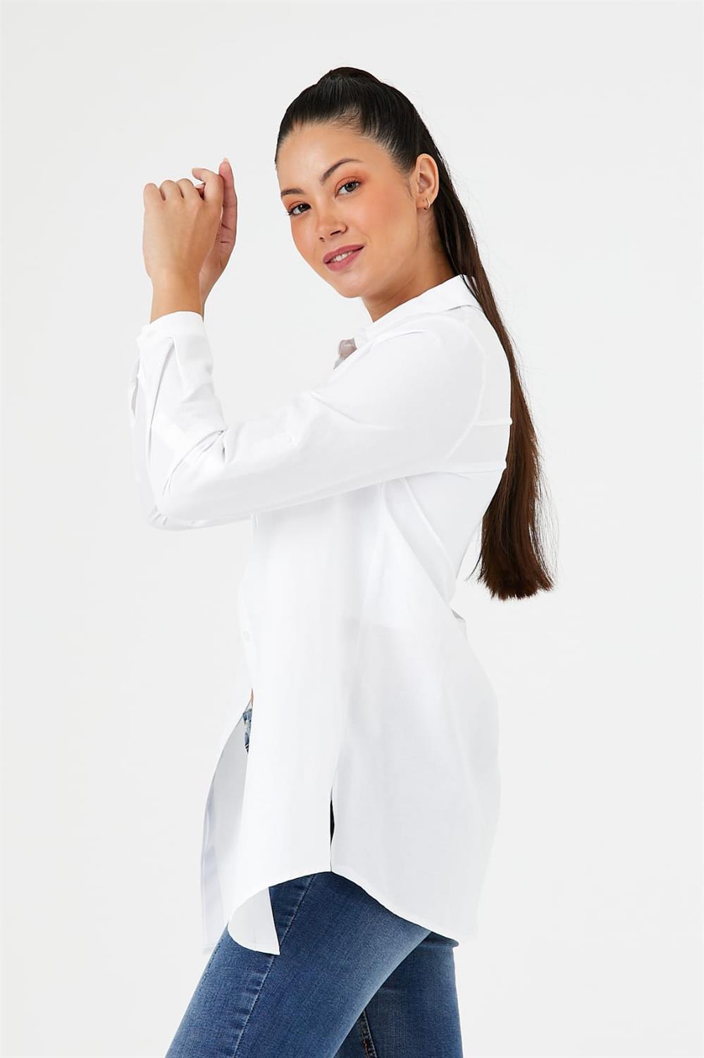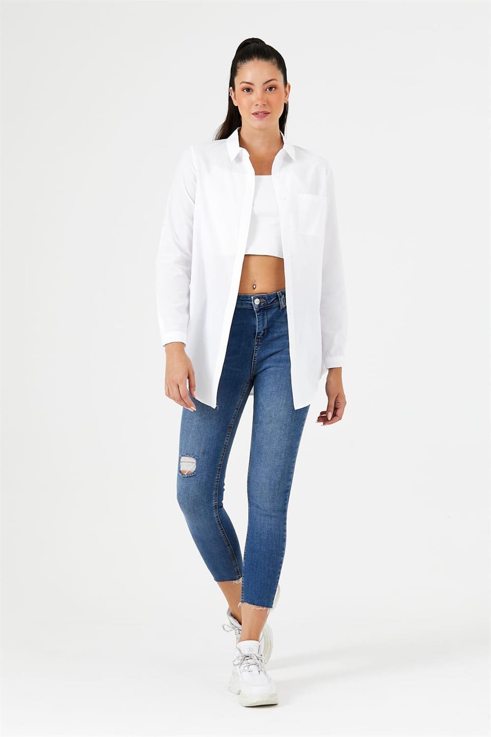 Bu tunik gömlek, güncel moda trendlerini yansıtan özel bir tasarıma sahiptir. Hem şık hem de rahat kesimi ile her anınıza uyum sağlar. Gömleğin ön yüzünde bulunan gizli düğme sistemi, estetik bir görünüm sunarken düğmelerin görünmesini engeller. Bu detay, gömleğinizi sadece şık değil, aynı zamanda sofistike kılar.