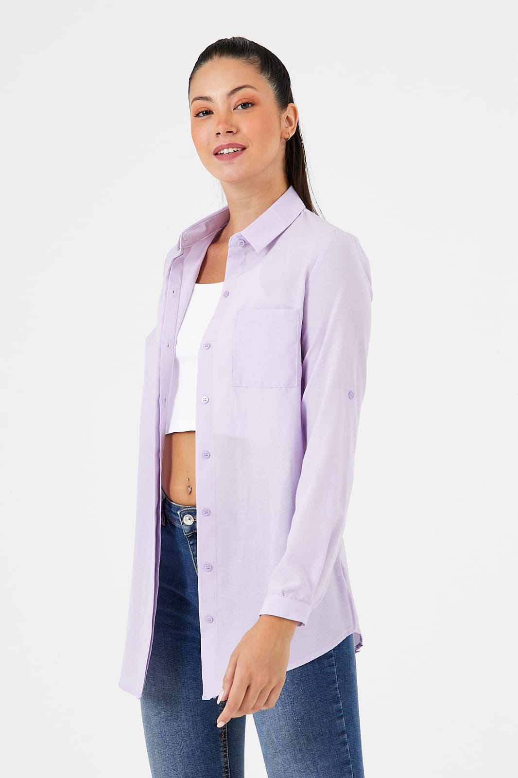 Kadın Gizli Düğme Özellikli Cepli Tunik Gömlek