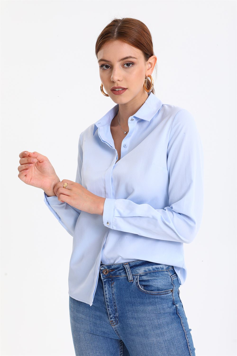 Kadın Klasik Fitilli Likralı Gömlek