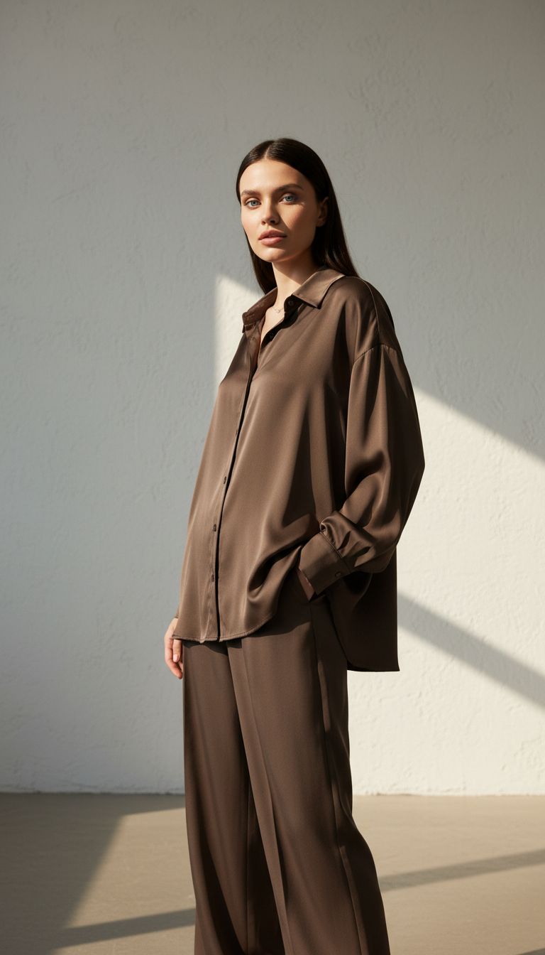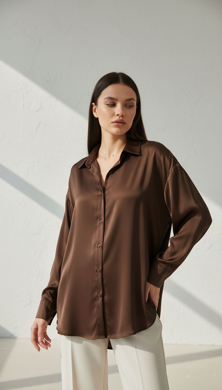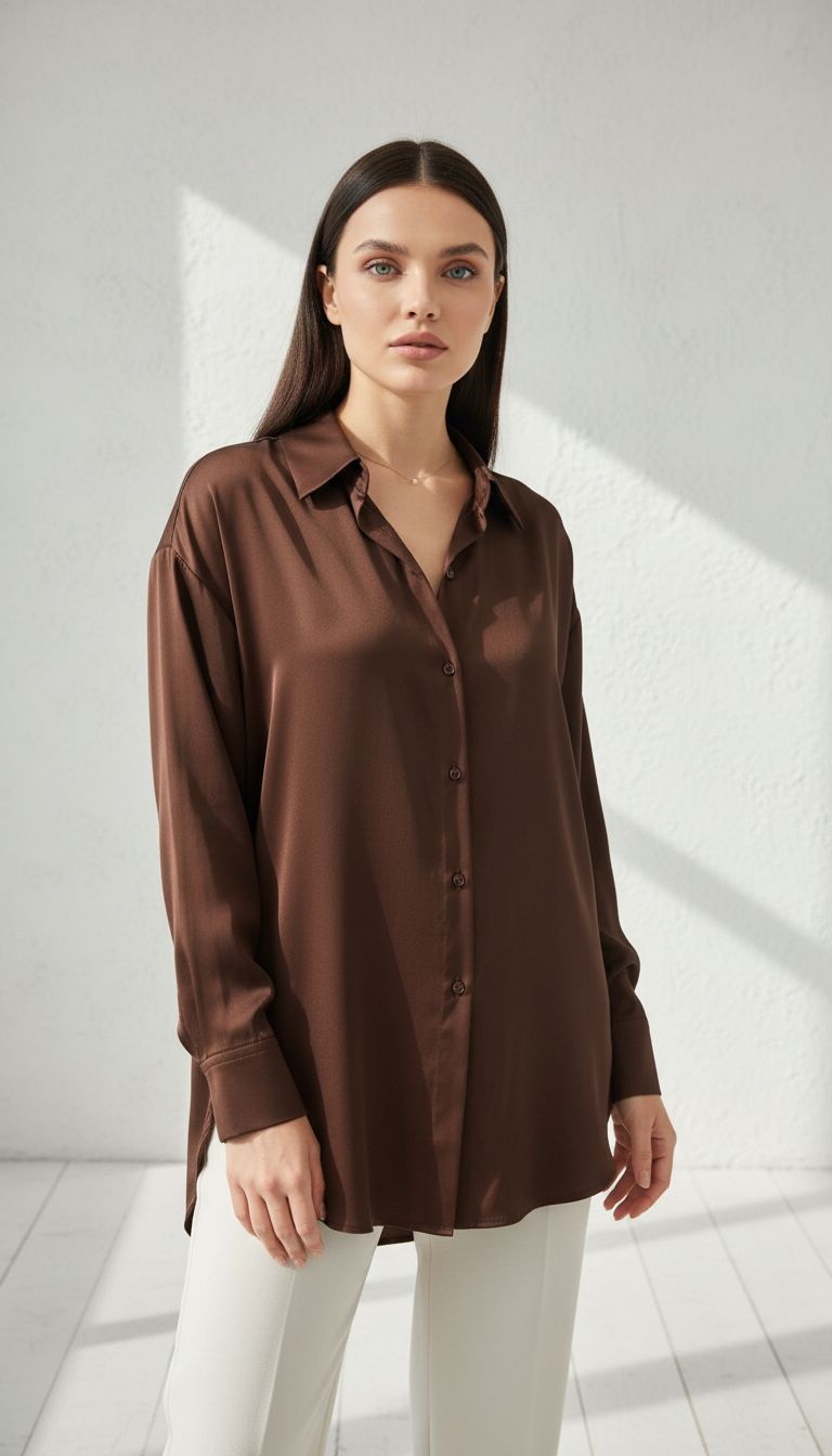 Kadın Salaş Oversize Kesim İpek Saten Gömlek