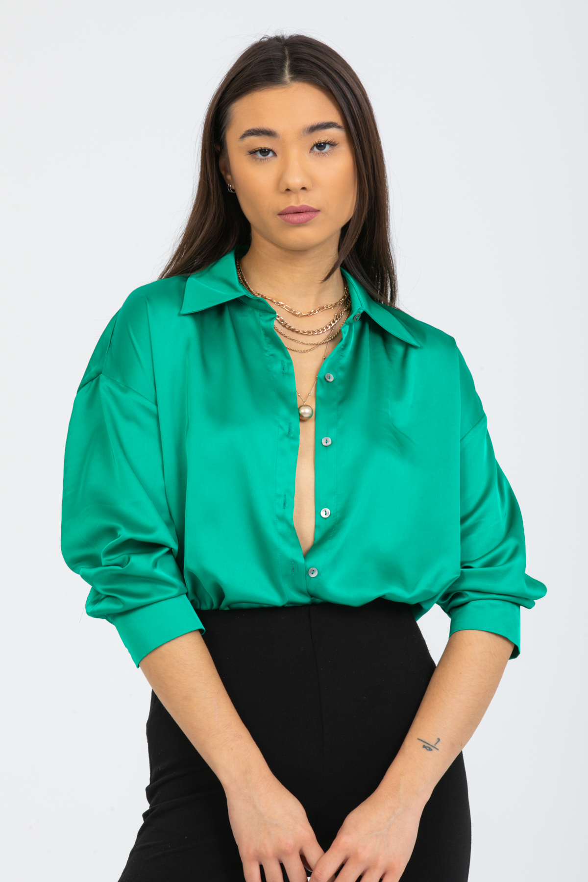 Kadın Salaş Oversize Kesim İpek Saten Gömlek